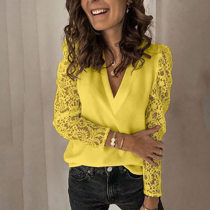 Блузка кружевная женская, однотонная, с длинным рукавом, V-образным вырезом, разных цветов, размера плюс, 5XL