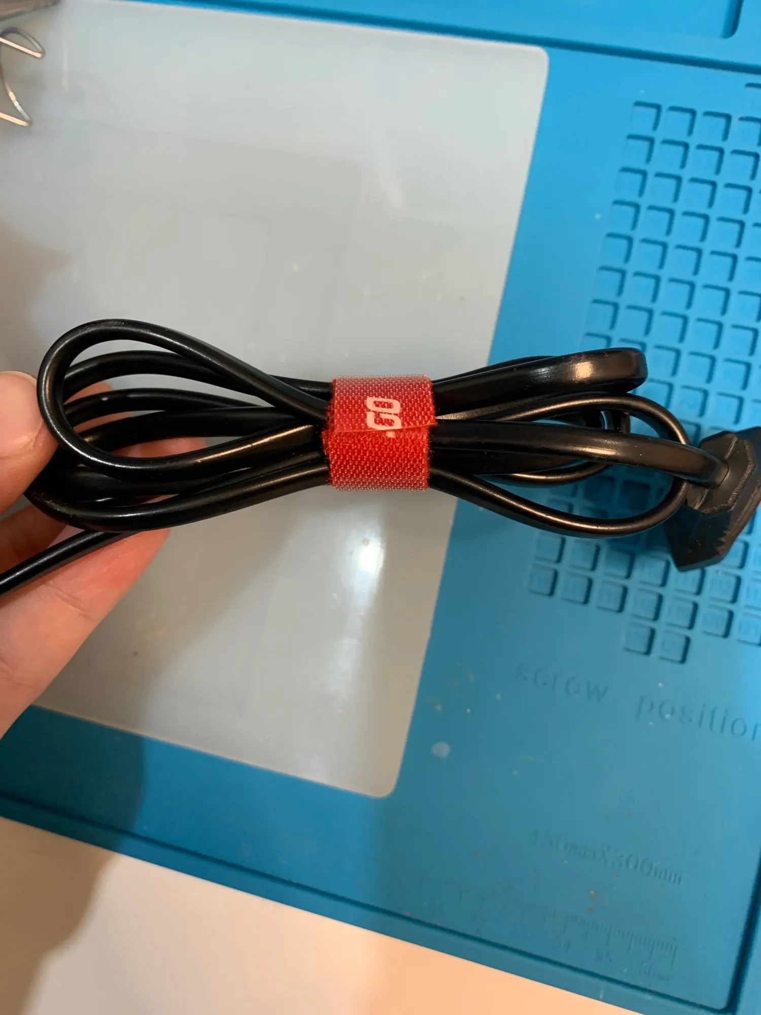 Очень практично. Это работает хорошо. Что мне понравилось, так это то, что каждый, кто режет Размер липучки в соответствии с размером кабелей... Что вам нужно!