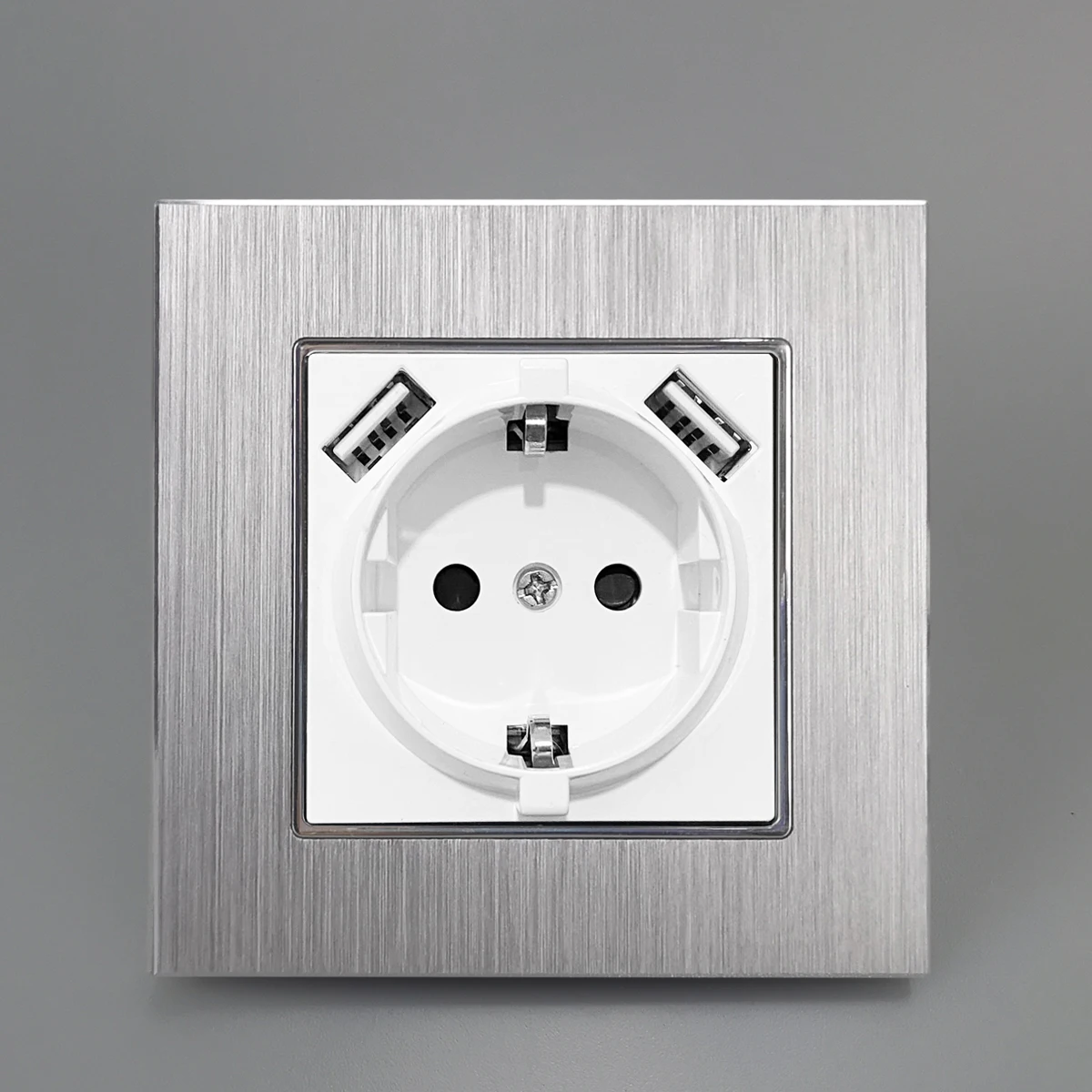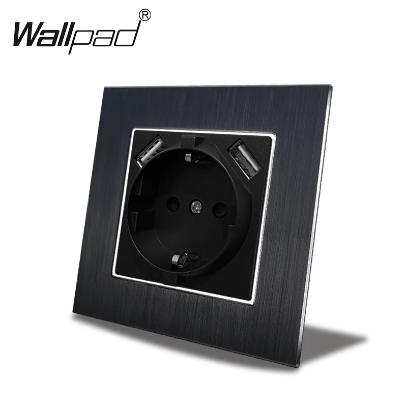 Wallpad черный металл 16A ЕС штепсель Мощность розетка с 2 портами (стандарт розетки Зарядное устройство плиты 5.1DC 2.1A для ЕС круглая коробка