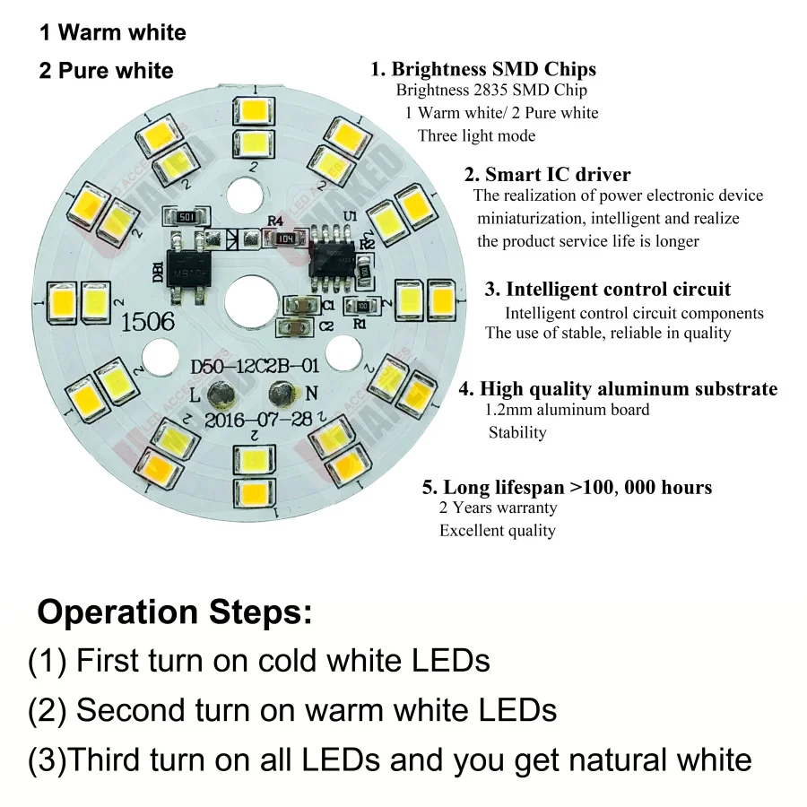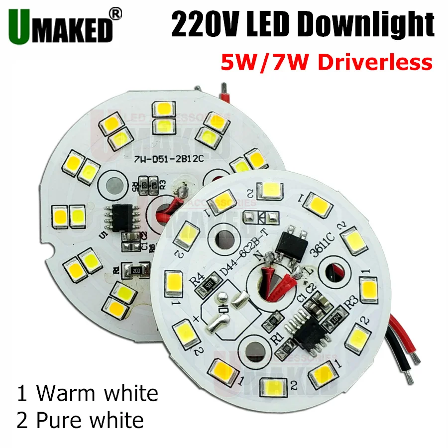 5 Вт 7 Вт AC 220 В светодиодный светильник с регулируемой яркостью с 20 см проводом, три режима светильник Светодиодная печатная плата без драйверов со встроенным драйвером IC smd
