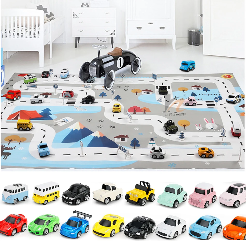 Игрушечный автомобиль, детский игровой коврик, дорожный автомобиль, детский Тяговый симулятор гоночного трека, Дорожная карта для мальчиков и девочек, искусственный ковер