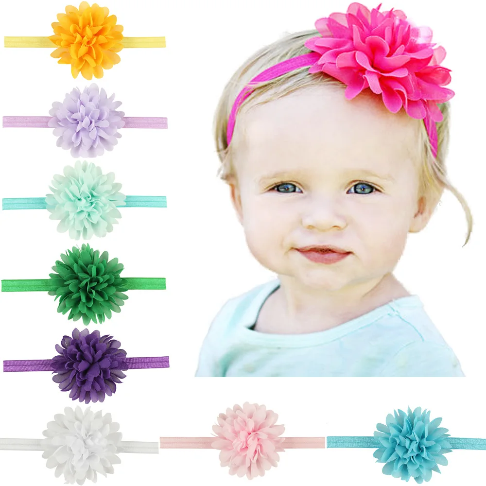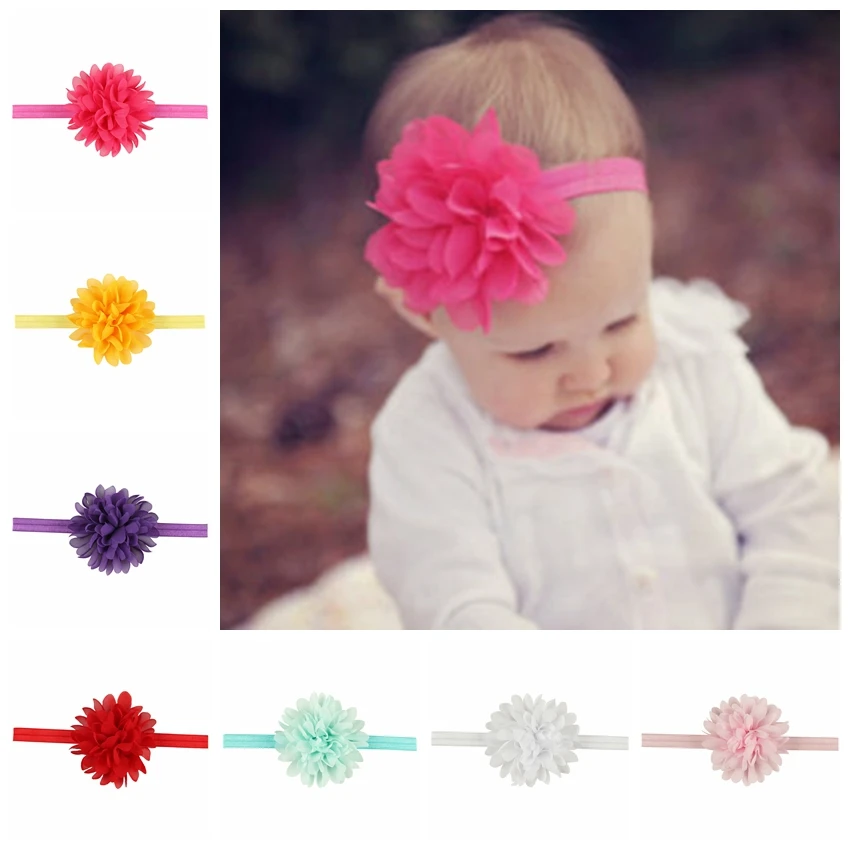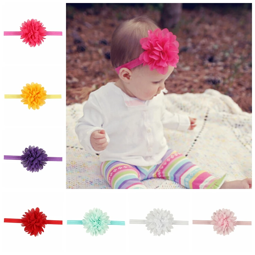 Повязка на голову шифоновая детская, для девочек, 1 шт., Цветочная эластичная повязка на голову