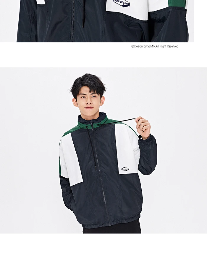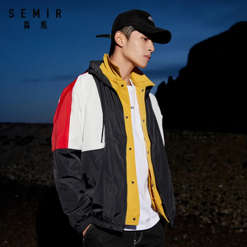 Куртка SEMIR мужская свободного покроя, топ с капюшоном контрастных цветов в студенческом стиле, спортивная верхняя одежда на осень