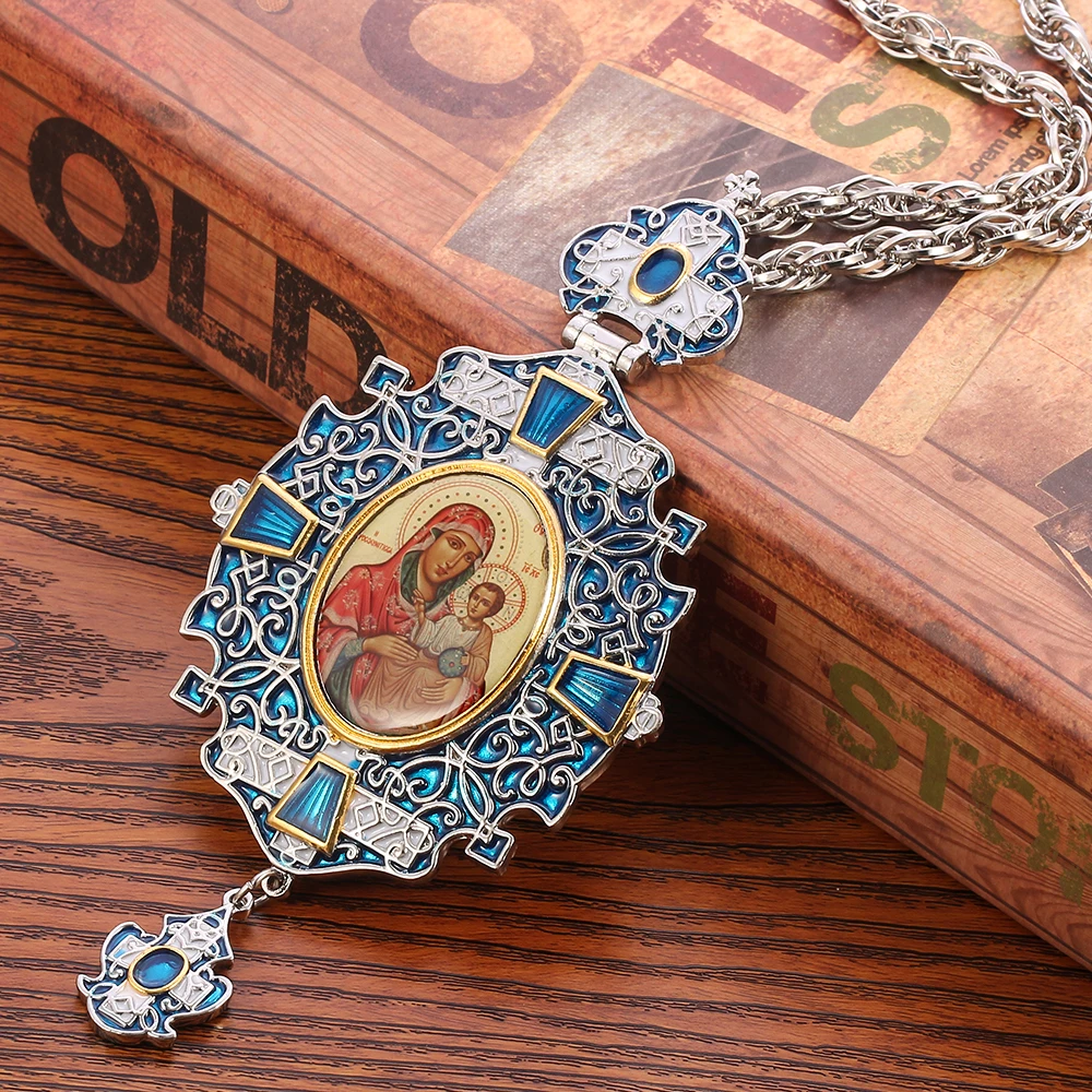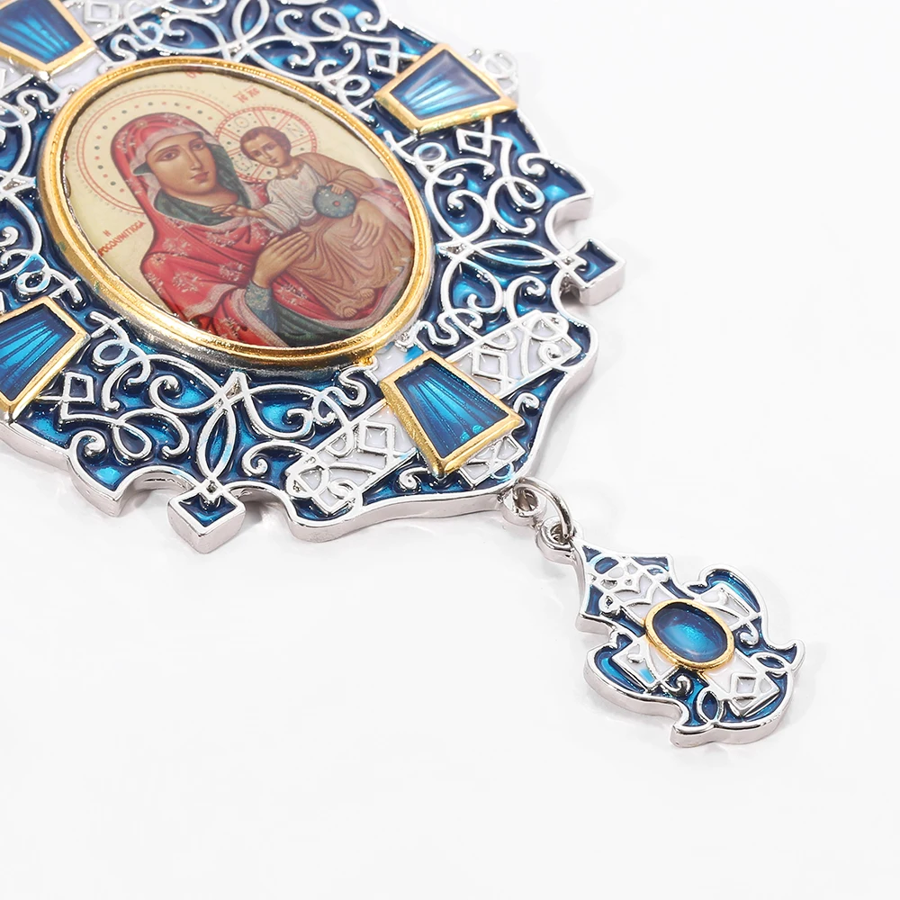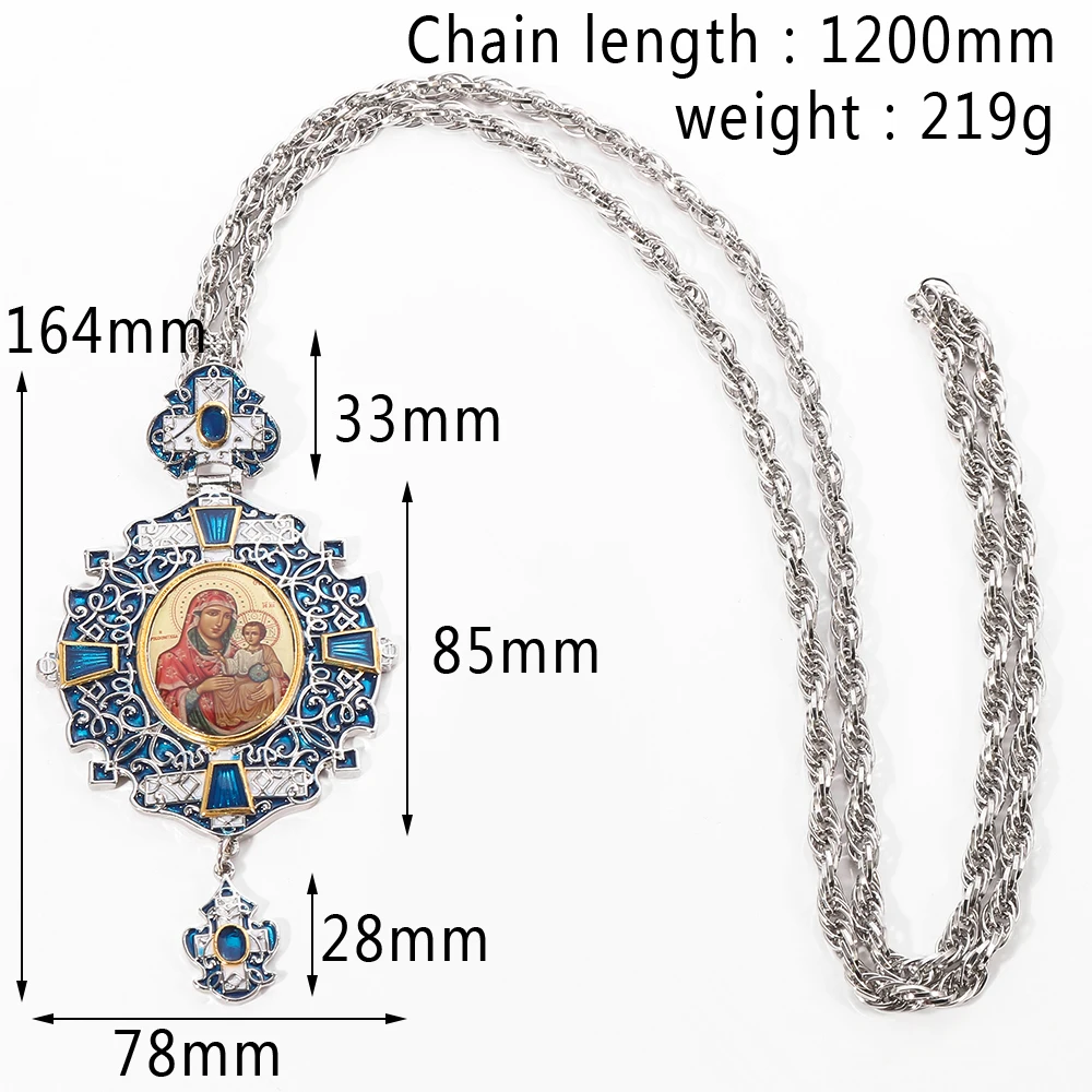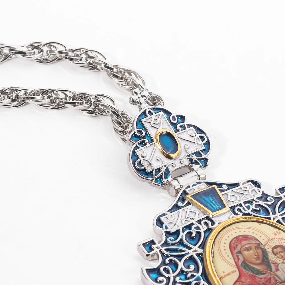 Винтажное ожерелье в виде грудного Креста с синими фианитами, эмалированное православное греческое распятие, ювелирная цепочка, религиозные поделки, рождественский подарок