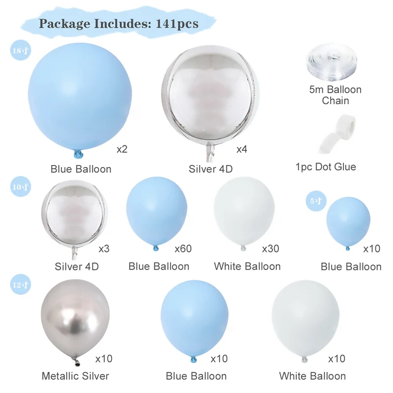 Гирлянда из 105 воздушных шаров, серебристый воздушный шар шт., син...
