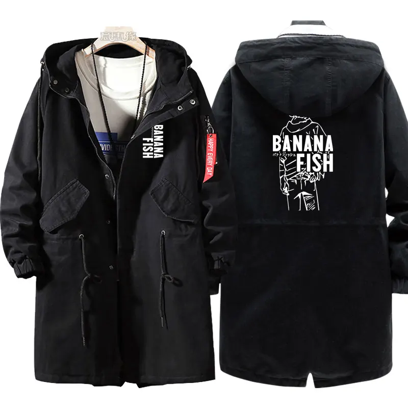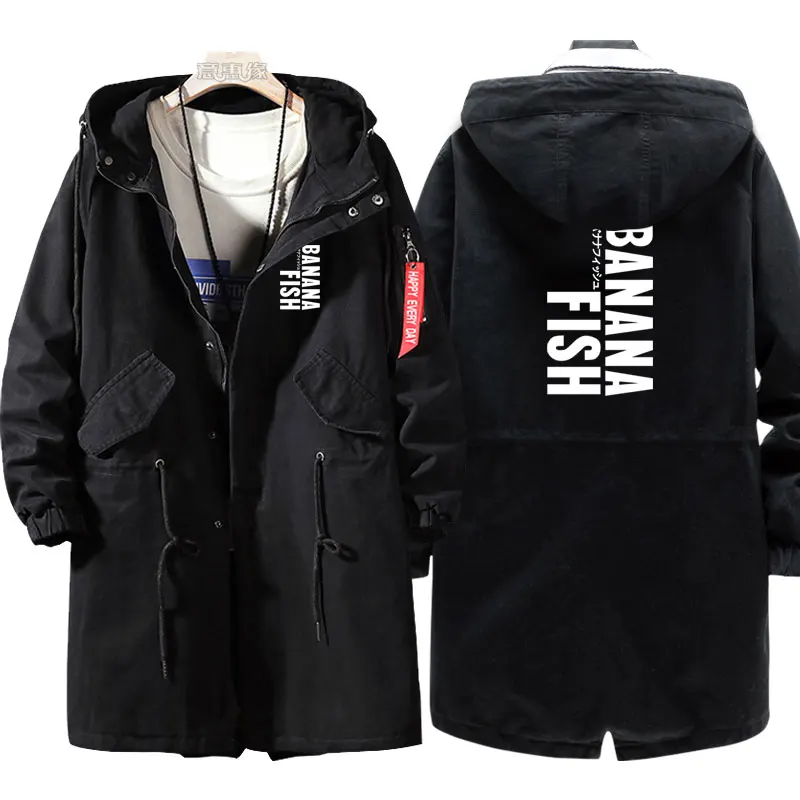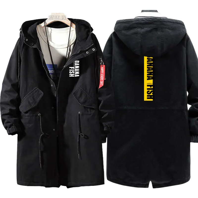 Новинка, тренчкот с банановым дизайном, аниме, ясень, рысь, мужское модное хлопковое пальто на молнии, куртка