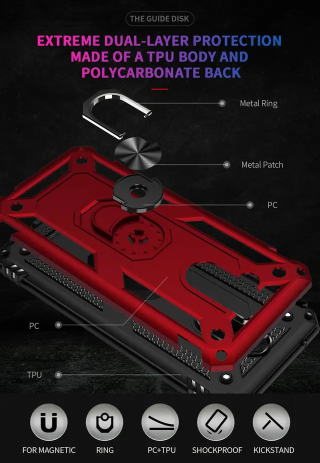 ХарактеристикиLuxury Rugged Hybrid 2-in-1 Back Case Magnetic Car Mount Ring Holder