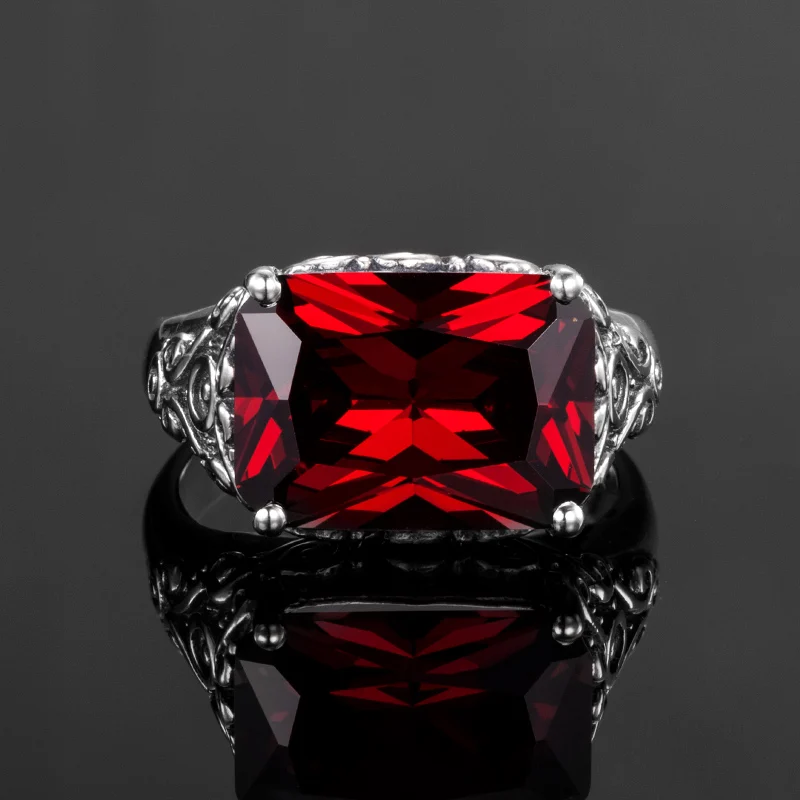 -Название: кольца -Стиль: винтажный -Техника: ручная работа -Металл: 925 пробы серебро -Цвет металла (изделие): античное серебро -Основной камень: гранат -Цвет основного камня: красный -Доступные Размеры колец: американский размер #5 , #6 , #7 , #8 , #9 , #10 -Размер изделия: как показано на рисунке (Размер камня: 10*14 мм, Размер кольца: 12*15 мм) -Общий вес: около 5,8 Г -Количество: 1 шт. -Особенности: высокое качество и абсолютно новый