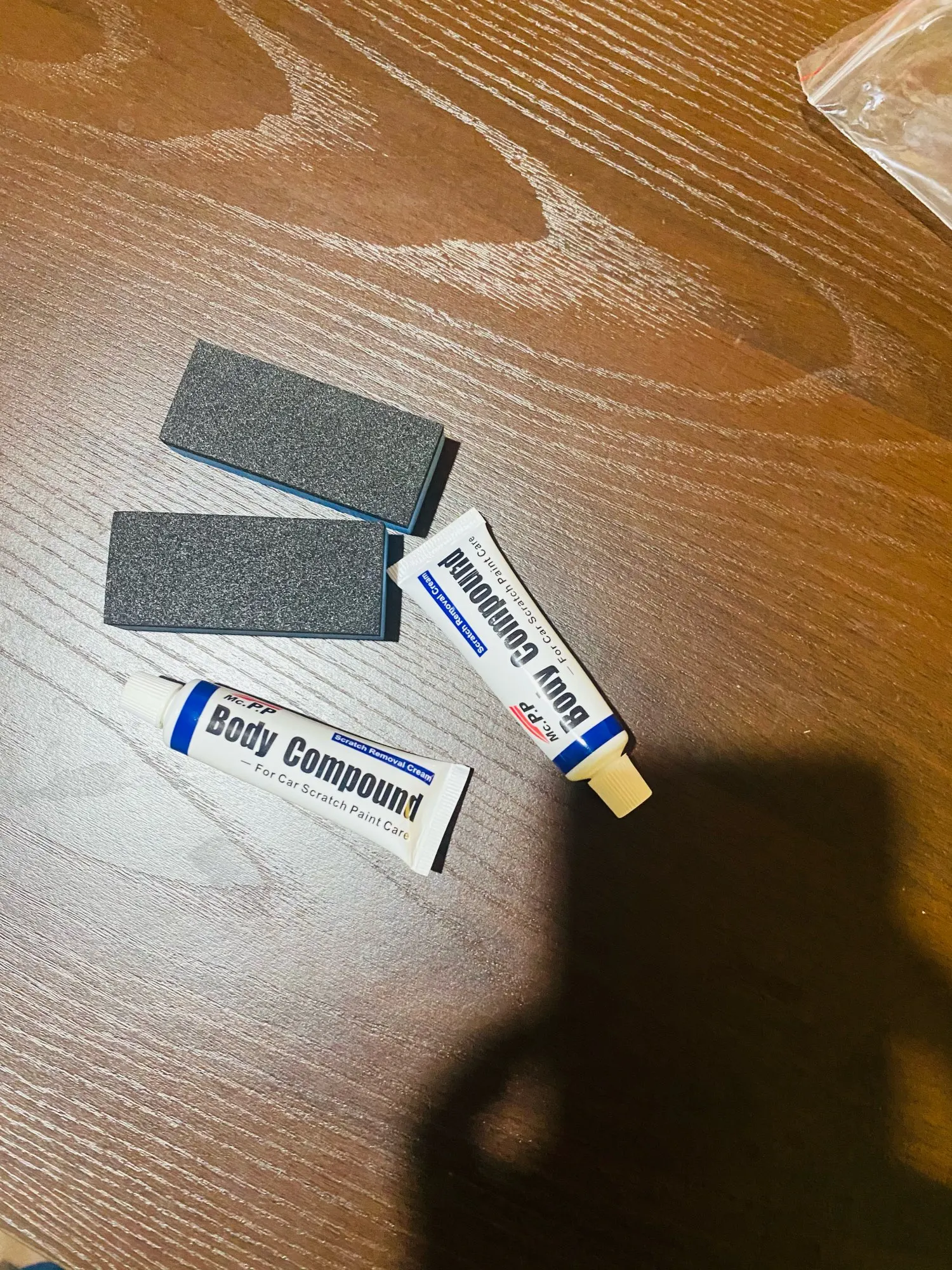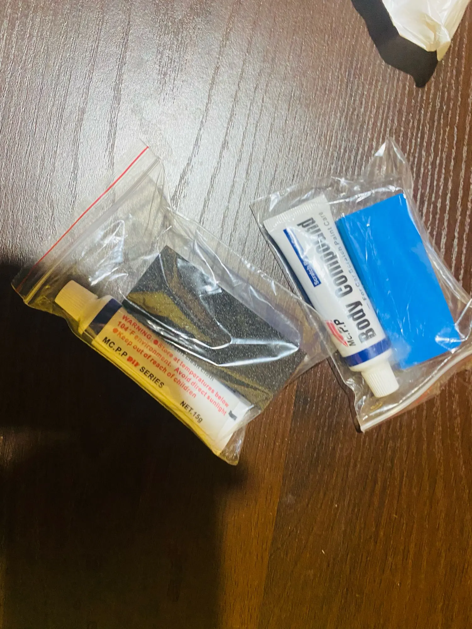 пришел заказ вместе с другими заказами, заказывал первый раз средство для заполнения царапин на автомобиле,в комплекте шла губка и тюбик с пастой тюбик 15грамм, губка с одной стороны как школьный ластик,для стирания карандаша, вторая как губка, ещё не пробывал в действии, рекомендовать товар не могу так как, незнаю как он работает,а продавца рекомендую, быстро отправил