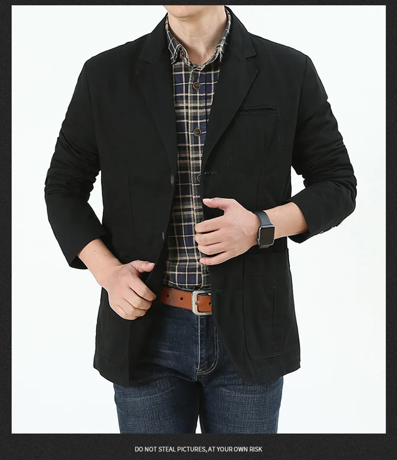 Мужской облегающий Блейзер, куртка из хлопка с эффектом потертости, деловой стиль, стиль милитари, куртка-бомбер, 4XL