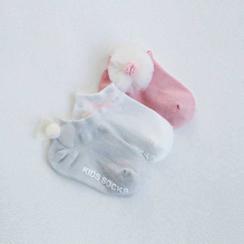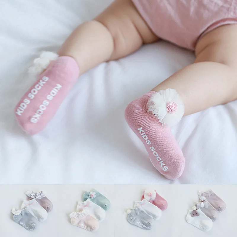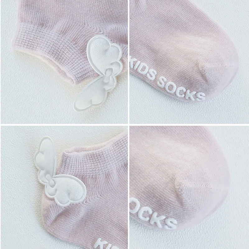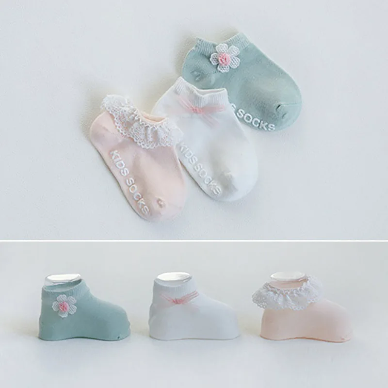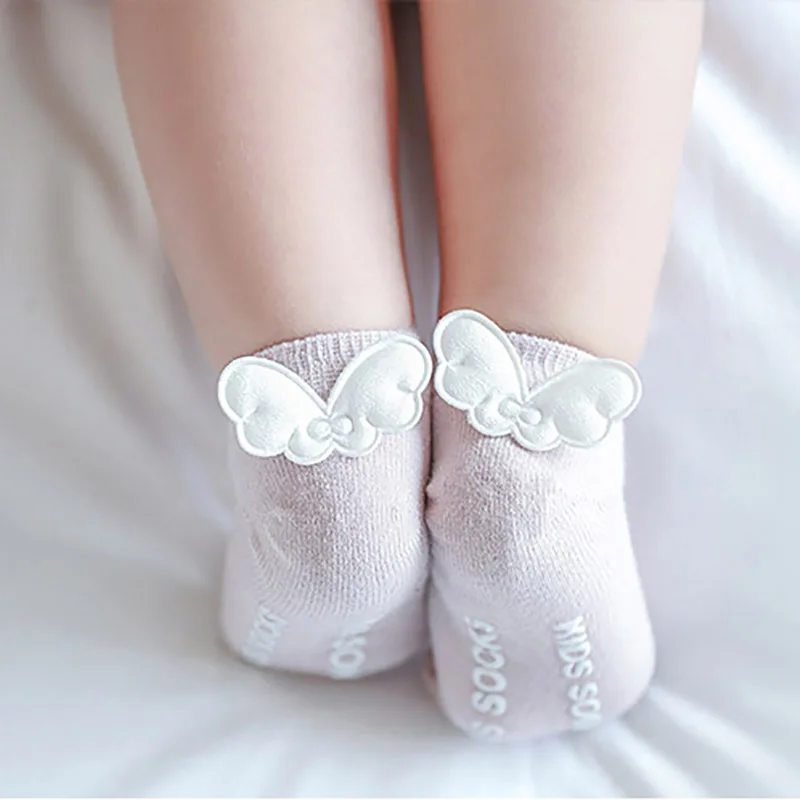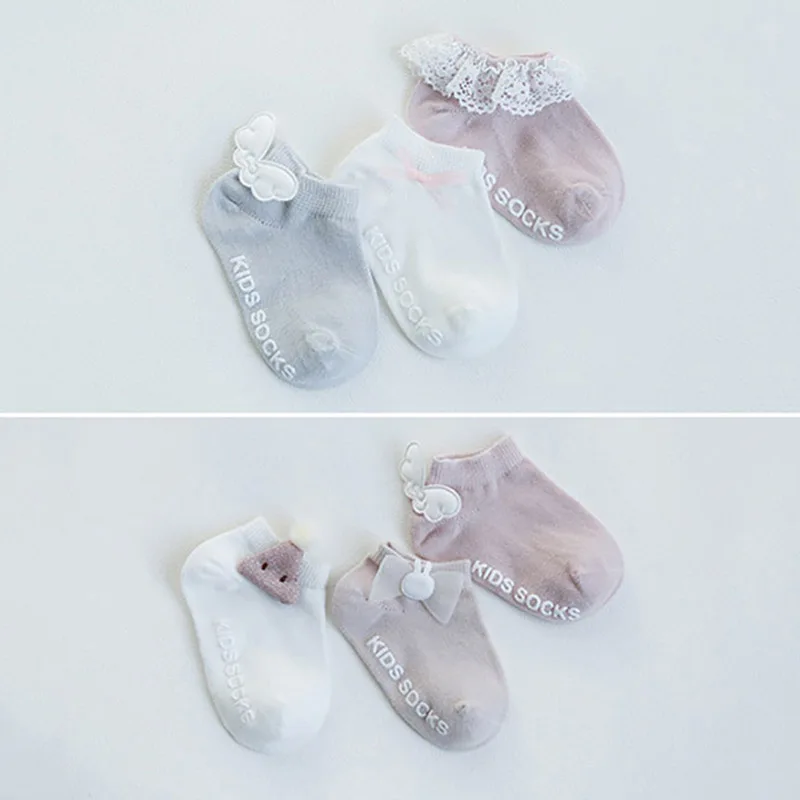 Носки для девочек, 3 парыЛот, Нескользящие, с кружевными цветами, крыльями, бантами, для новорожденных, мягкие хлопковые носки