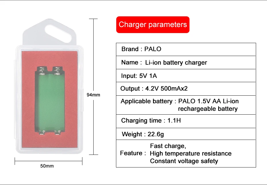 Литий-ионная аккумуляторная батарея PALO, 1,5 в, 1,5 МВтч