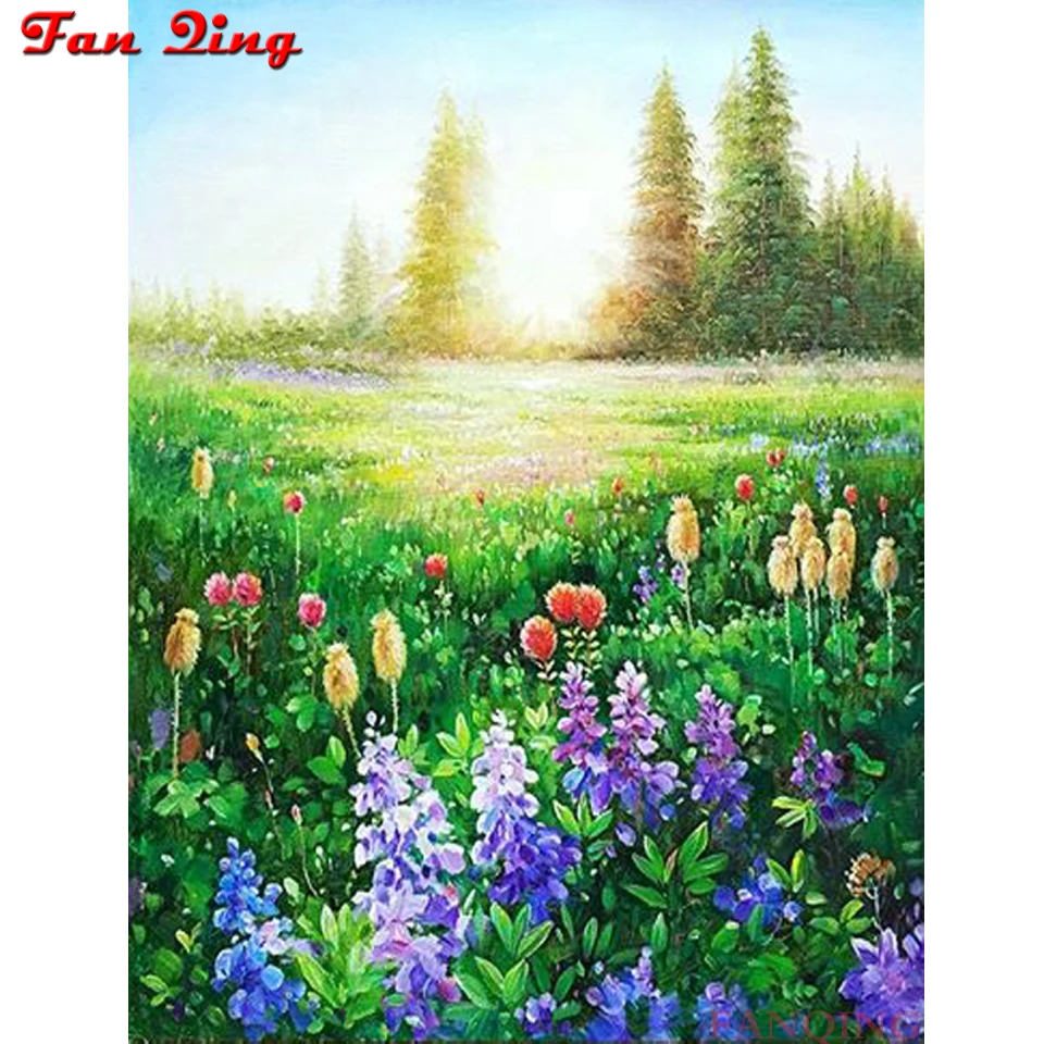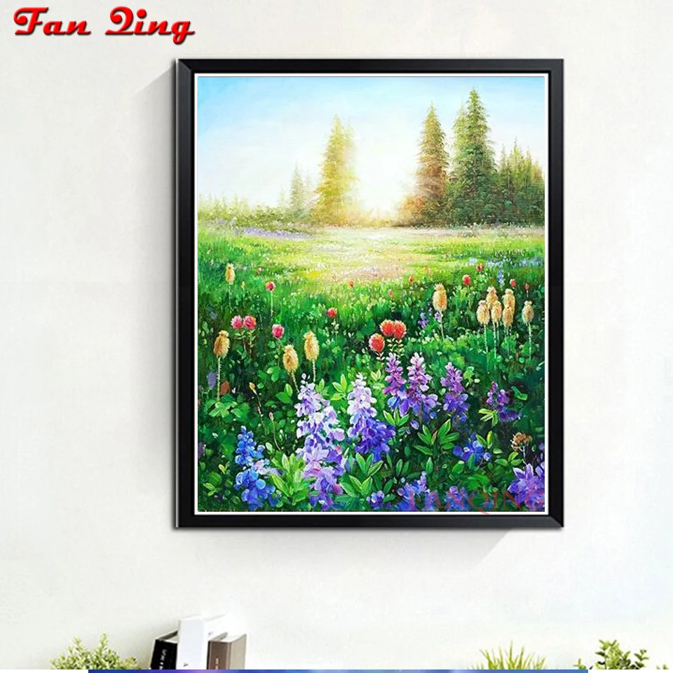 5D DIY Алмазная вышивка идиллический Пейзаж Цветы Алмазная картина полностью квадратная мозаика картина природы Стразы домашний декор