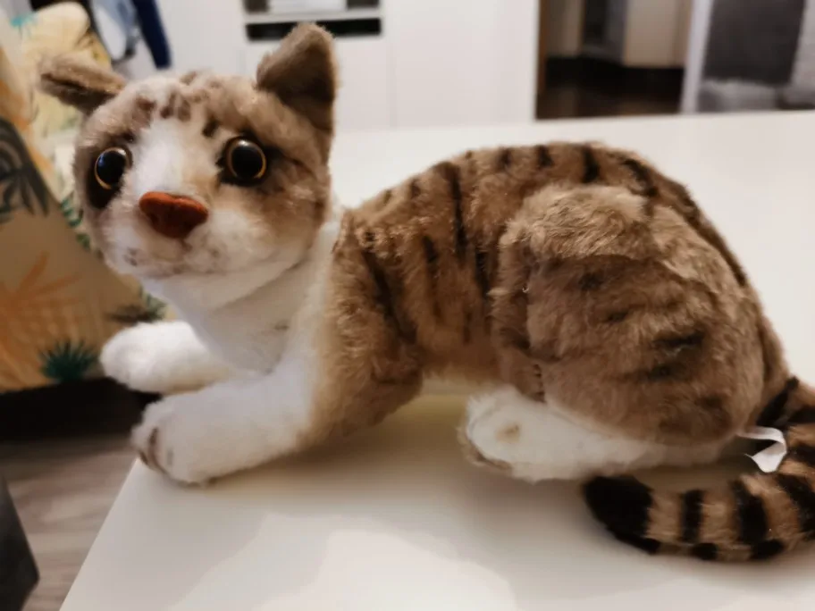 Игрушка шла до Оренбургской области 3 недели. Очень симпатичная кошечка, сделана аккуратно, нитки не торчат, запаха нет. Думаю, что ребёнок будет в восторге - игрушка похожа на настоящую кошечку