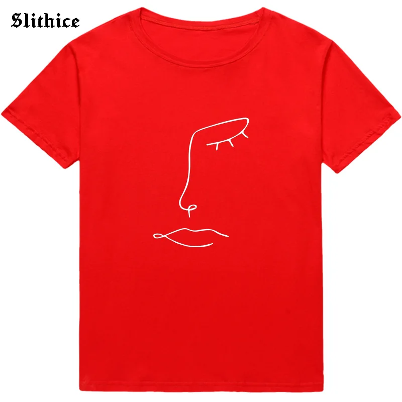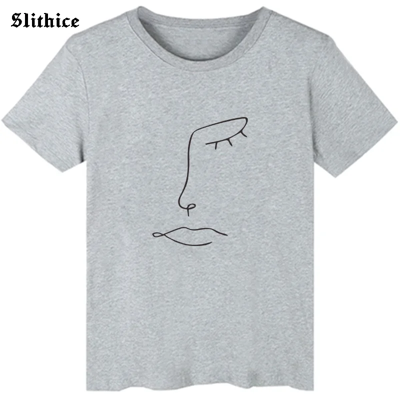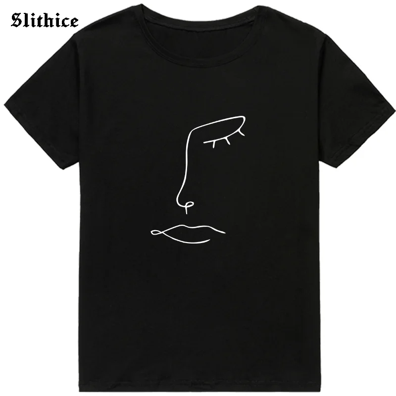 Футболка женская с абстрактным изображением лица, простая футболка с эстетическим графическим принтом, Черный Белый Топ в стиле Tumblr, женская футболка