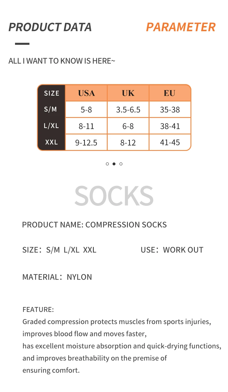 Почему все больше и больше людей любят носить компрессионные носки сейчас?Независимо от того, являетесь ли вы спортсменом, который хочет преуспеть в игре, который сидит долгое время во время путешествий или на работе, или кто-то, кто борется с болью из-за хронического состояния, поддержка правильного кровотока на ноги имеет первостепенное значение. Наши компрессионные носки разработаны с новейшей технологией сжатия от свода до икры, Предлагаем адресную поддержку голени и мышц, помогает сохранить поток крови, чтобы повысить атлетическую производительность и облегчить боль из-за ряда условий.