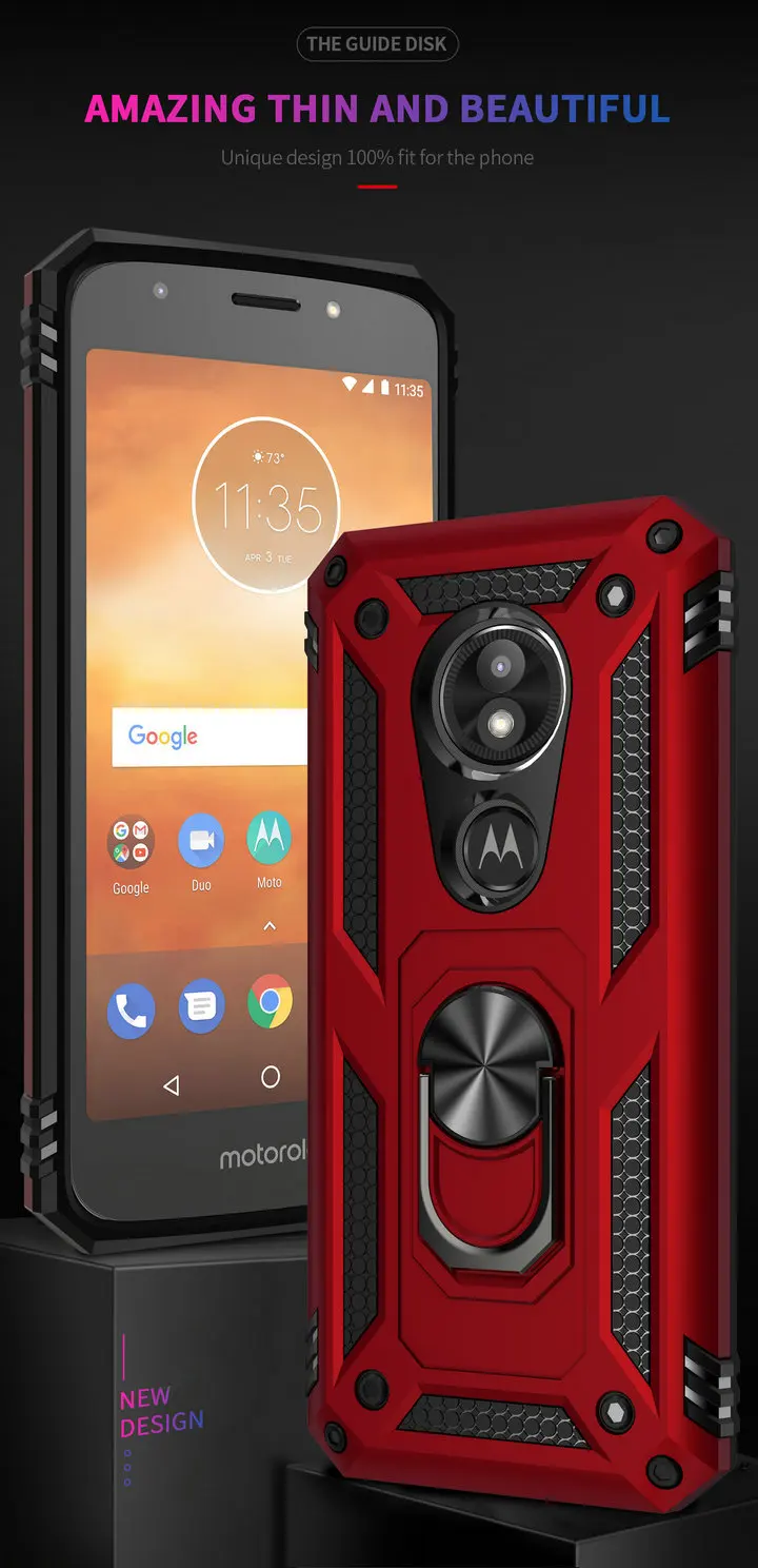 Чехол-накладка для Motorola Moto E5 Play, с металлическим кольцом-держателем
