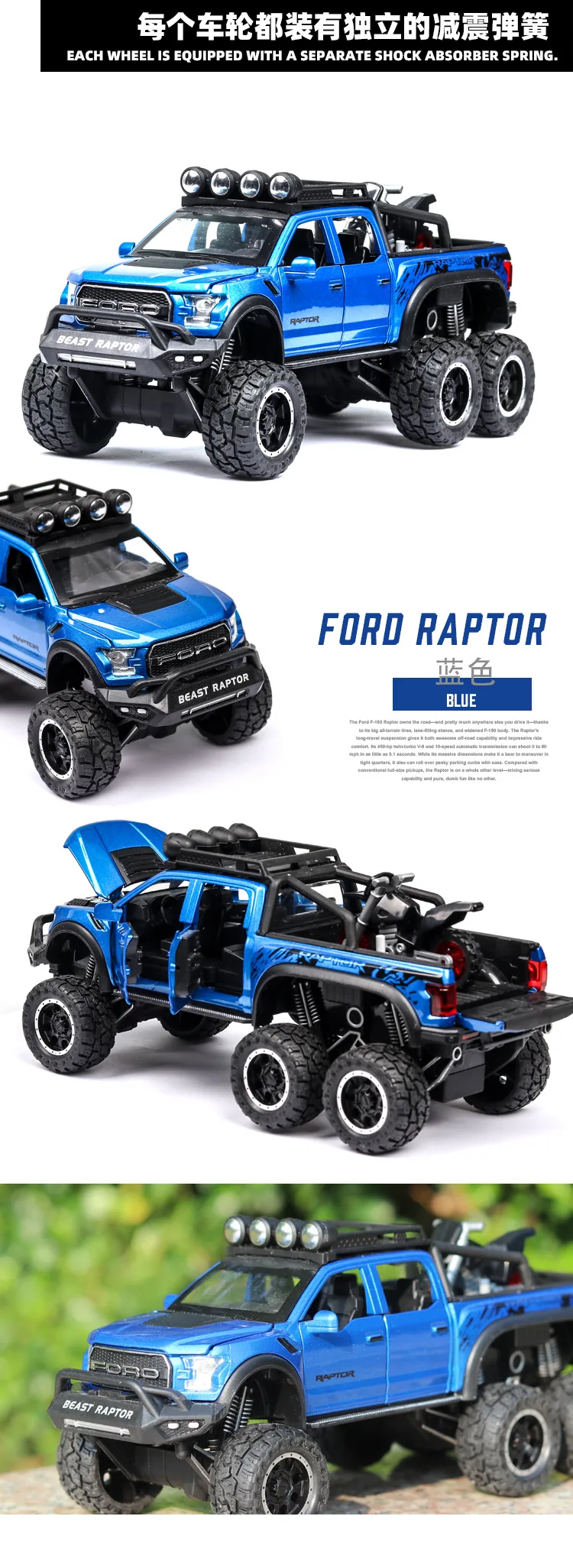 Модель автомобиля Ford Raptor F150, из сплава, с большими колесами, со звуком, подсветкой, игрушки для детей, рождественские подарки, 1:28