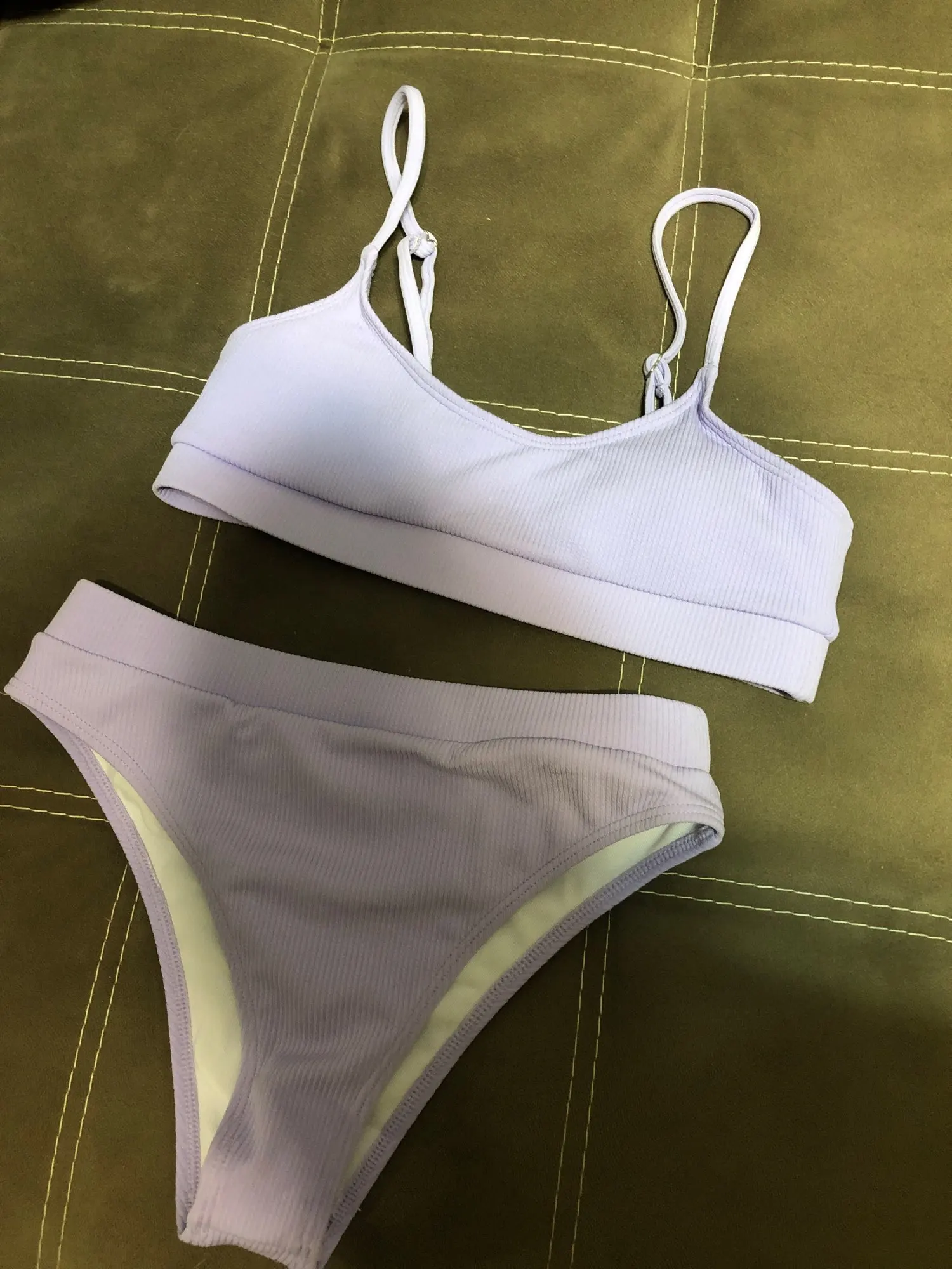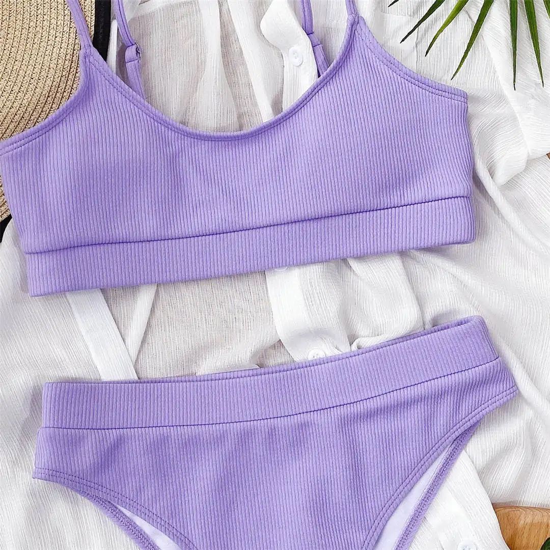 Купальник женский в рубчик, S-XL, с высокой талией, V2439