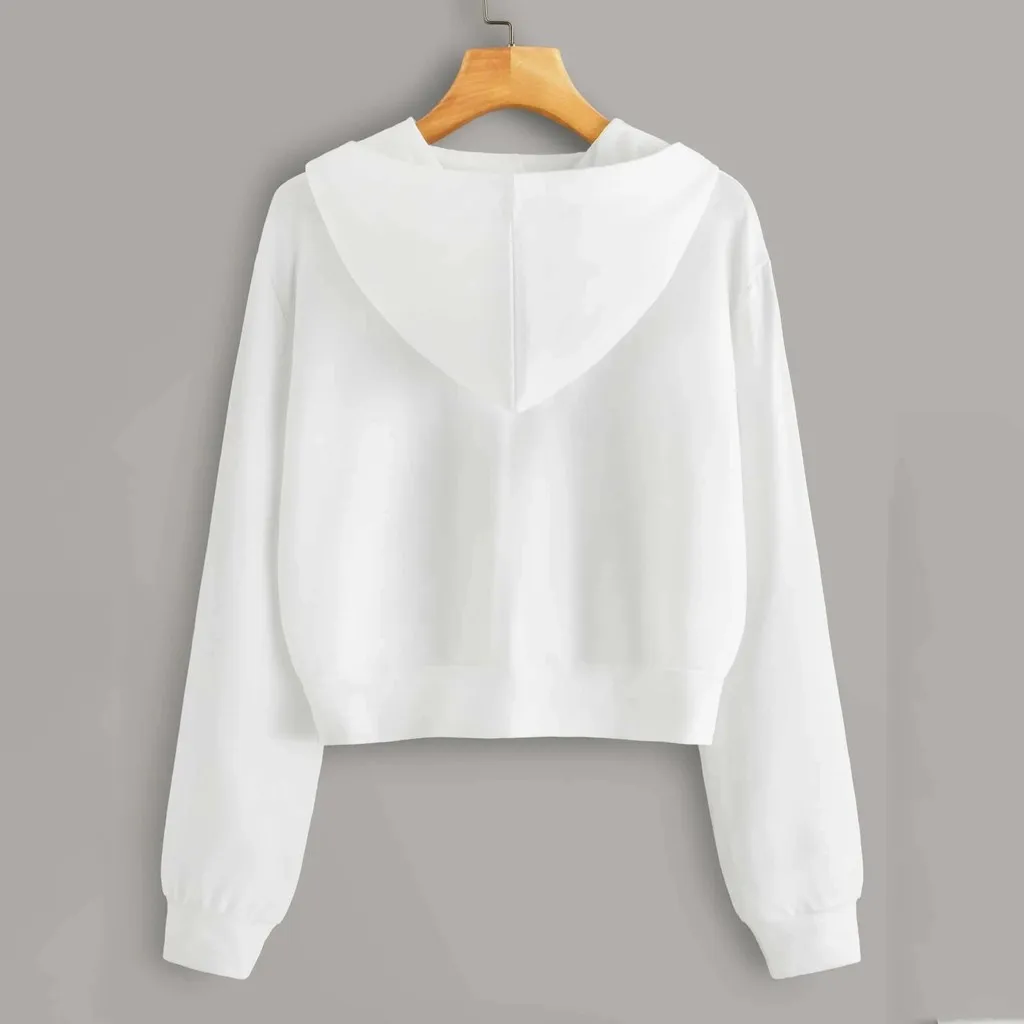 Рубашка женская Повседневная однотонная с длинным рукавом, свитшот на молнии с карманами, модный топ с капюшоном, Белая кофта, на осень