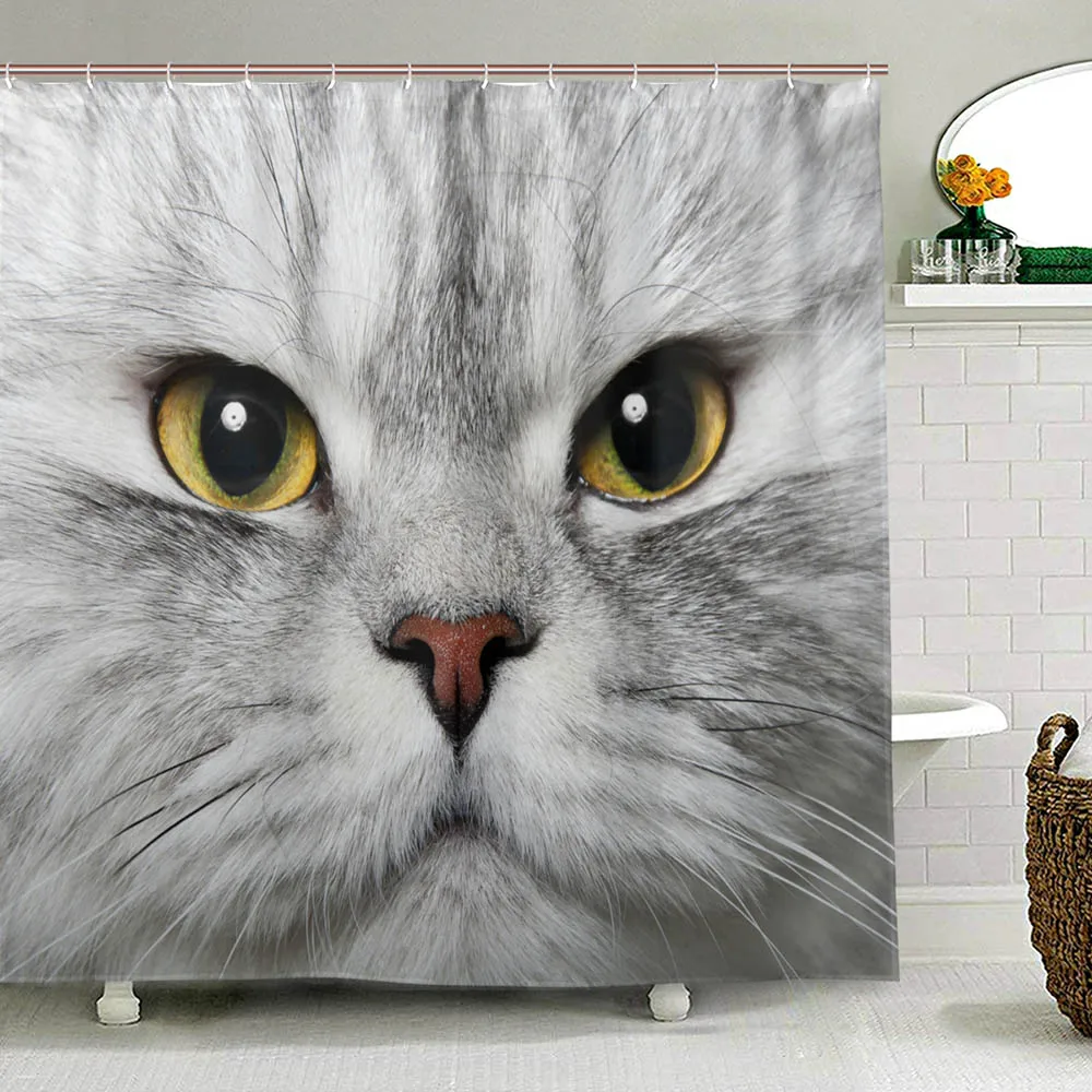 Портрет Питомца персидский кот занавеска для душа Котенок крупным планом занавеска для ванной тканевая Водонепроницаемая с 12 крючками