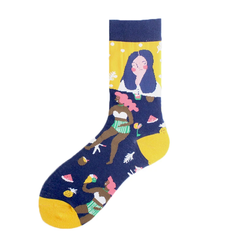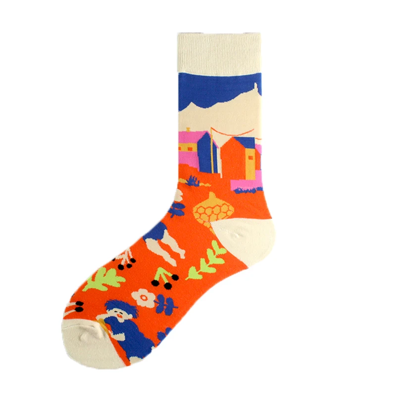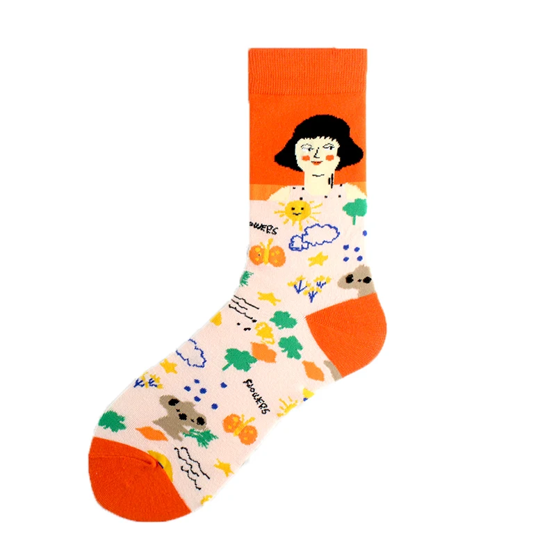 Франция Креативный дизайн Граффити личность Смешные Носки Теплый Красочный портрет счастливый жаккард носки женские Skarpetki Sokken Meias