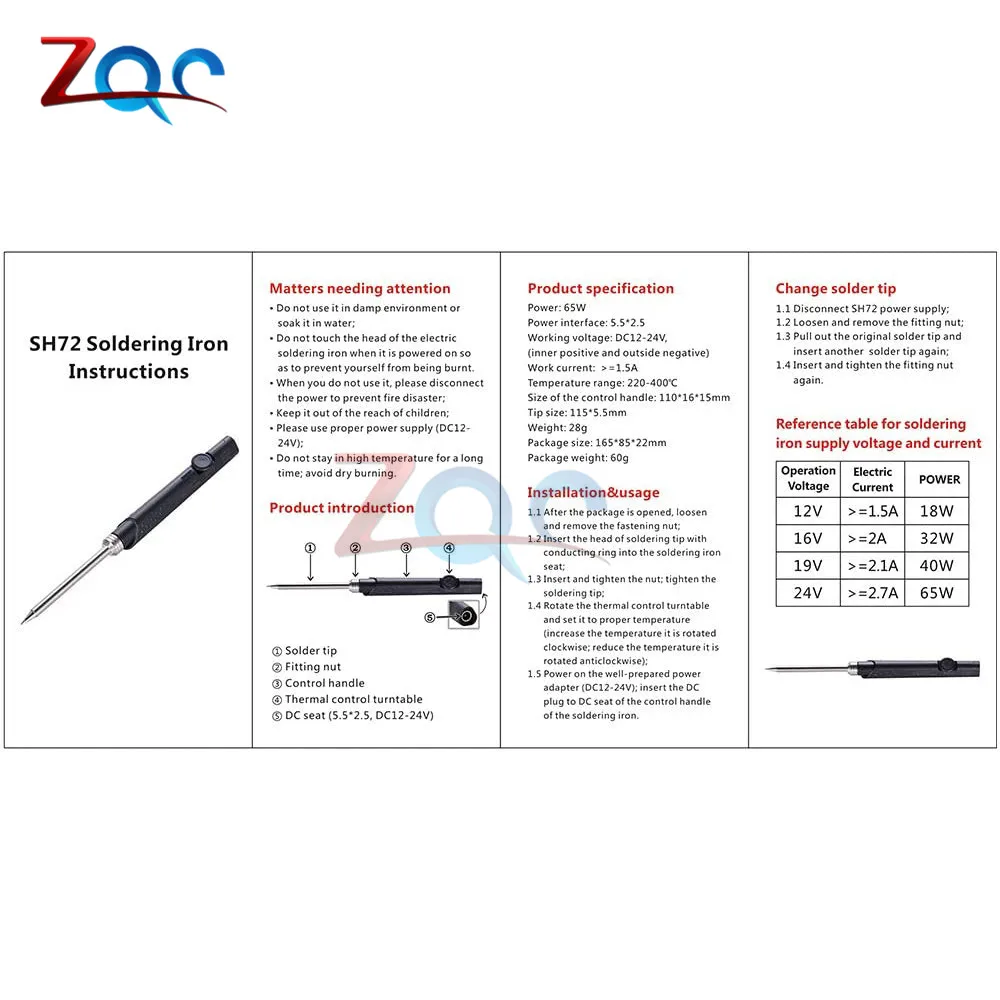 SH72 Портативный мини паяльник для подключения к Регулируемый Температура 200-400 паяльный инструмент IKB2BC2 советы ACDC 12-24V 1.5A 65 Вт сварочное железо