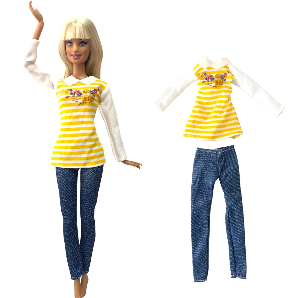 NK 1x кукла Лидер продаж одежда модная Смешанная стильная рубашка повседневная одежда джинсы для куклы Барби аксессуары милая девочка игрушка 284 JJ