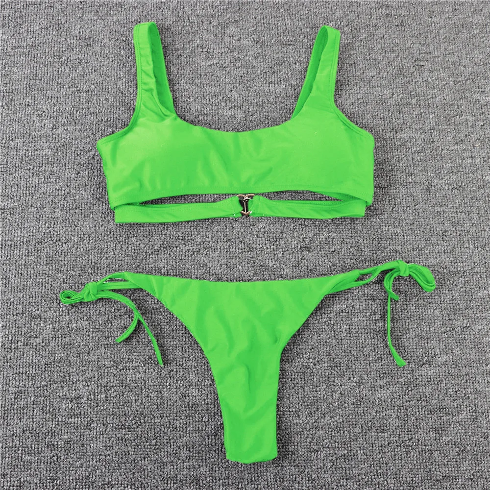 2020 Новый однотонный Стильный Модный женский бандажный купальник б...
