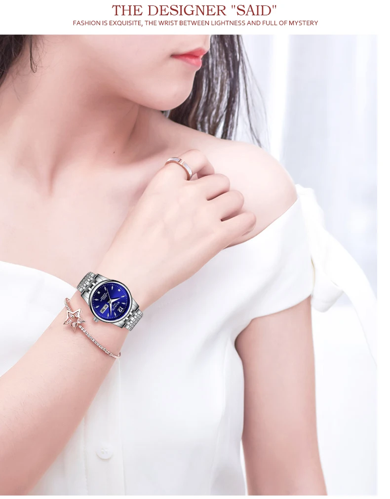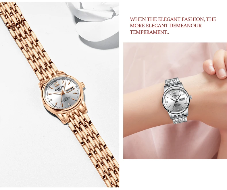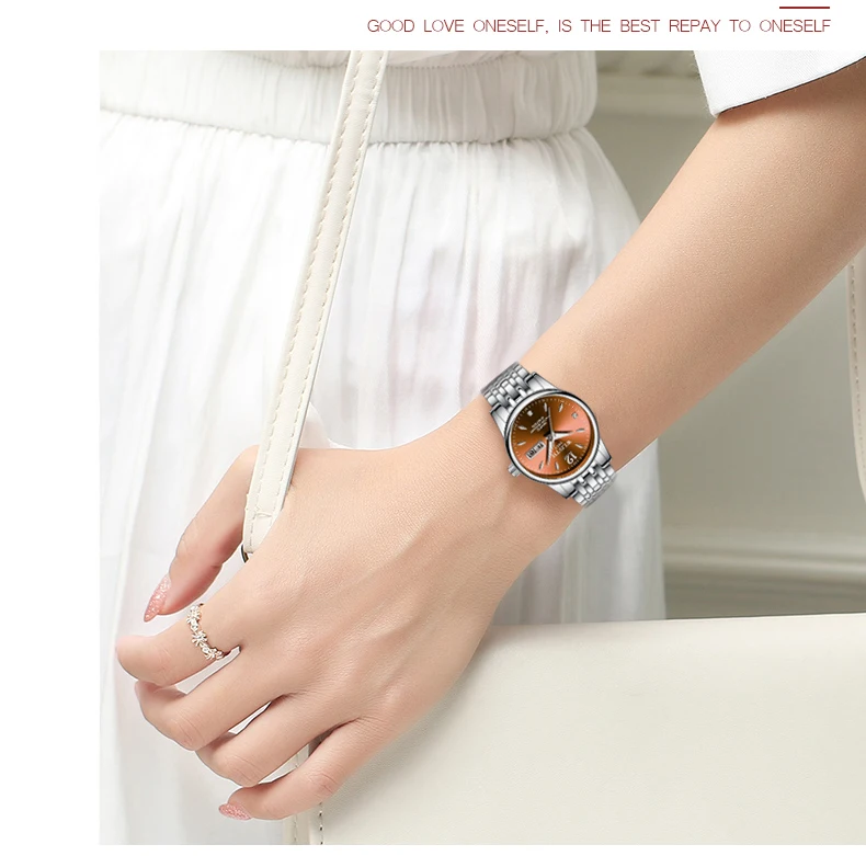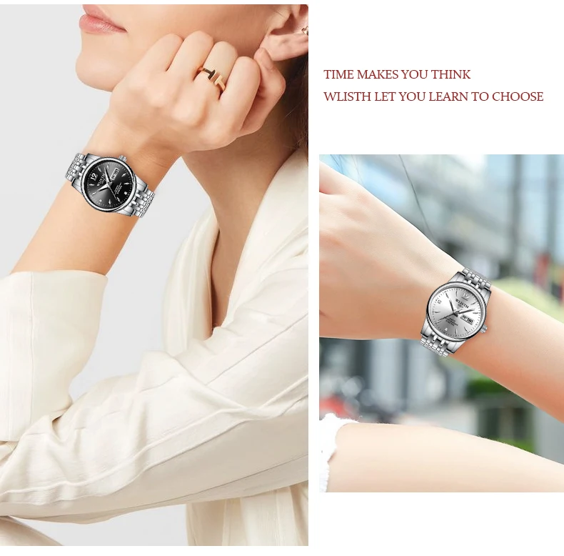 Часы женские кварцевые из нержавеющей стали, модные повседневные Роскошные светящиеся часы с днями недели с автоматической датой