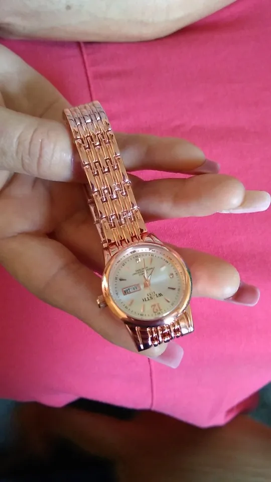 Цвет часов абсолютно не такой как на фото, представленным продавцом. Часы прямо розовые какие-то и циферблат не коричневатый, а розовый.