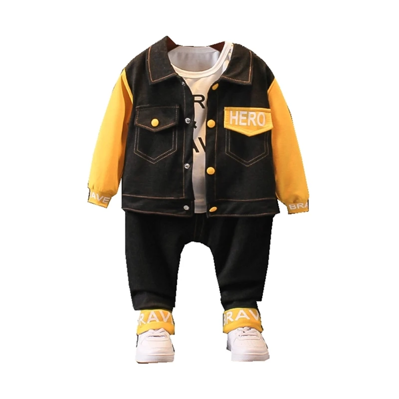 Новая Осенняя детская одежда куртка с лацканами для маленьких мальчиков и девочек Футболка и штаны 3 шт./компл., Весенняя детская одежда для младенцев Спортивная одежда для малышей, для От 0 до 4 лет
