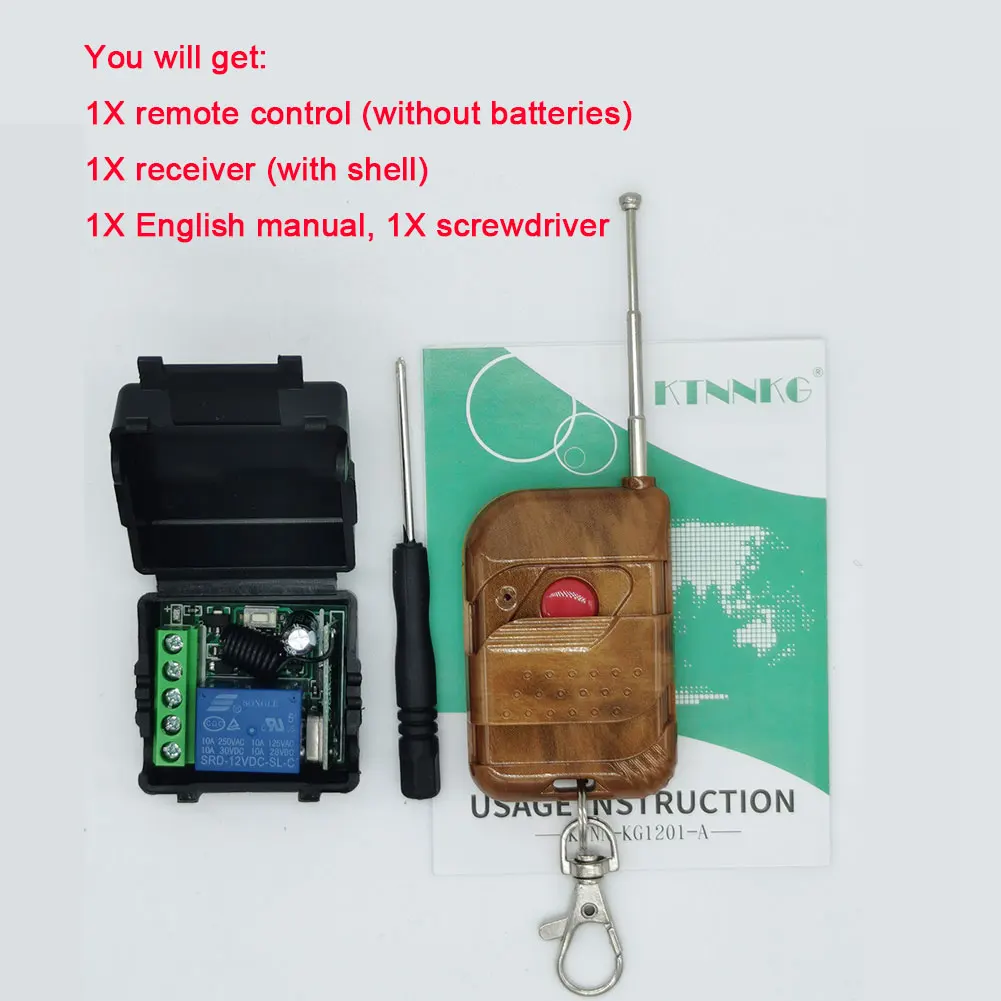 1 шт. * Модуль приемника (KG1201A) (корпус в комплекте)1 пульт дистанционного управления (батарея в комплект не входит)