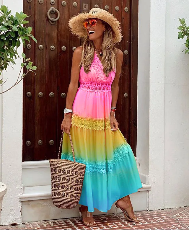 Felyn 2020 лучшее качество от известного бренда платье Радужный цвет вышивка летнее пляжное макси платье Vestidos