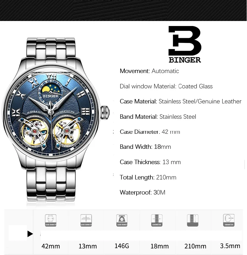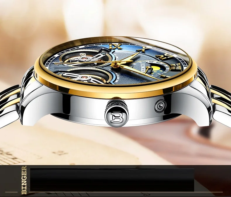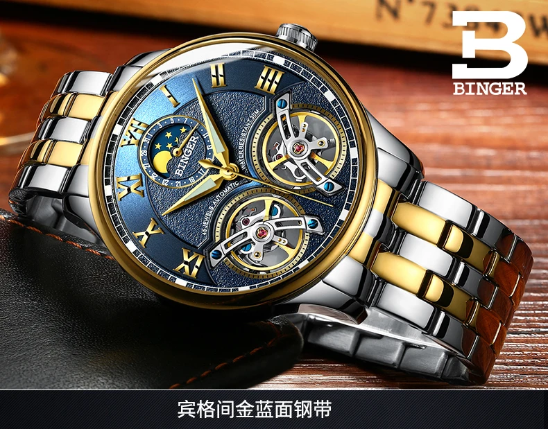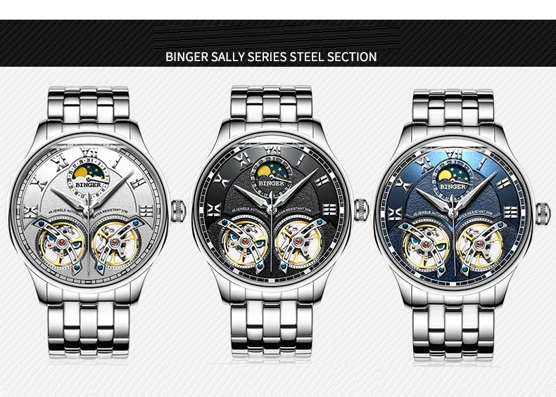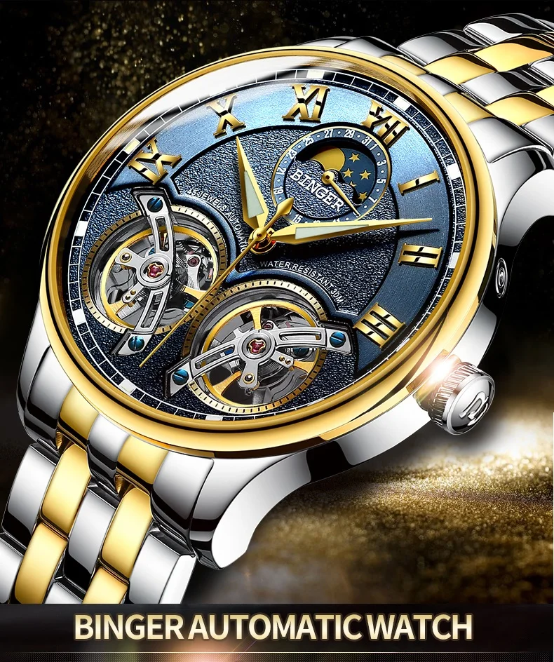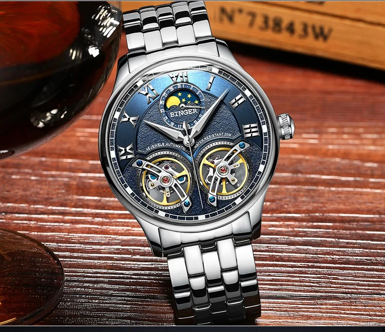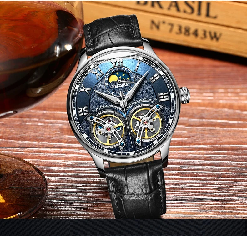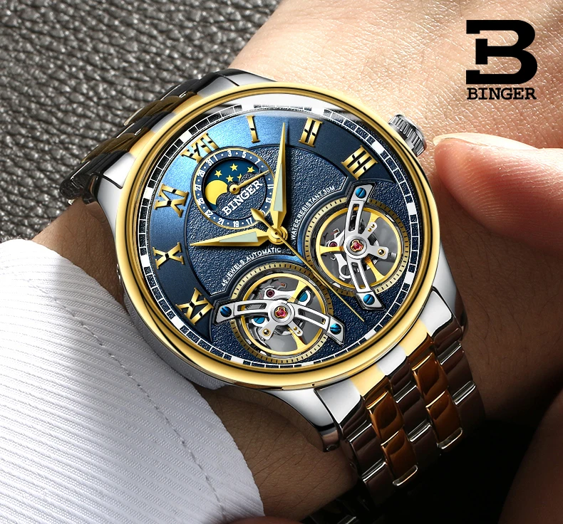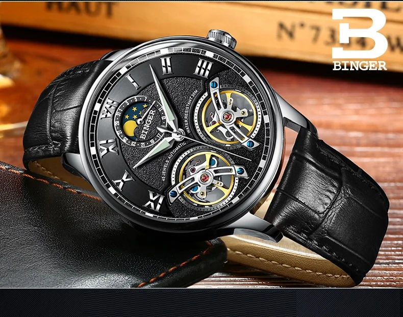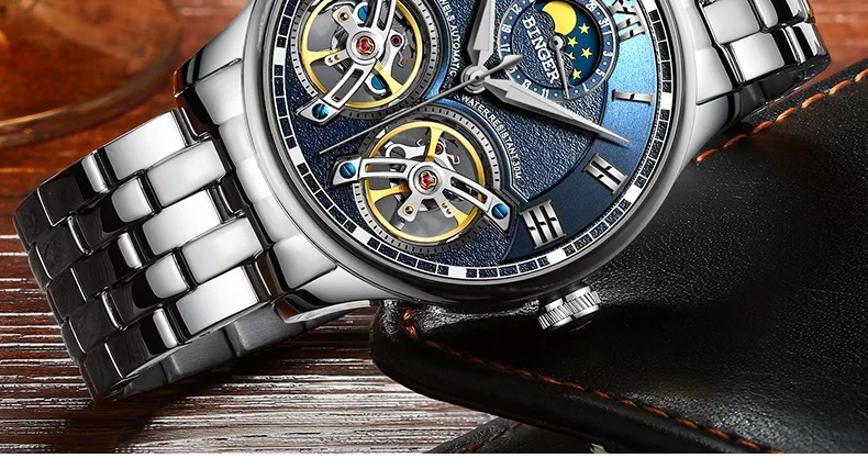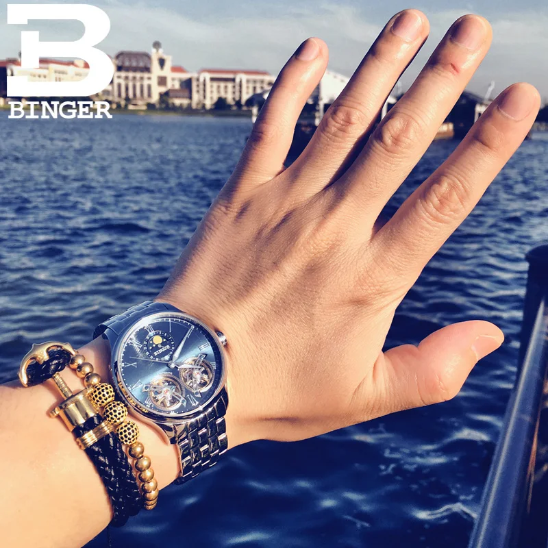 Швейцарские мужские часы BINGER с турбийоном, автоматические Модные...