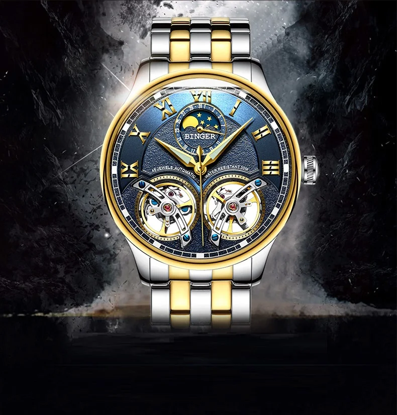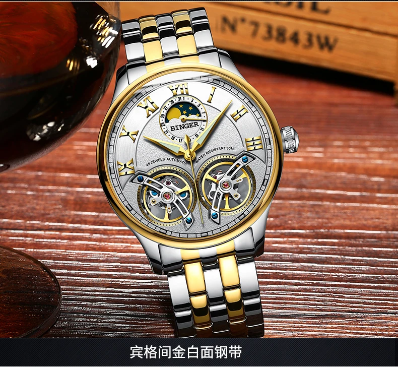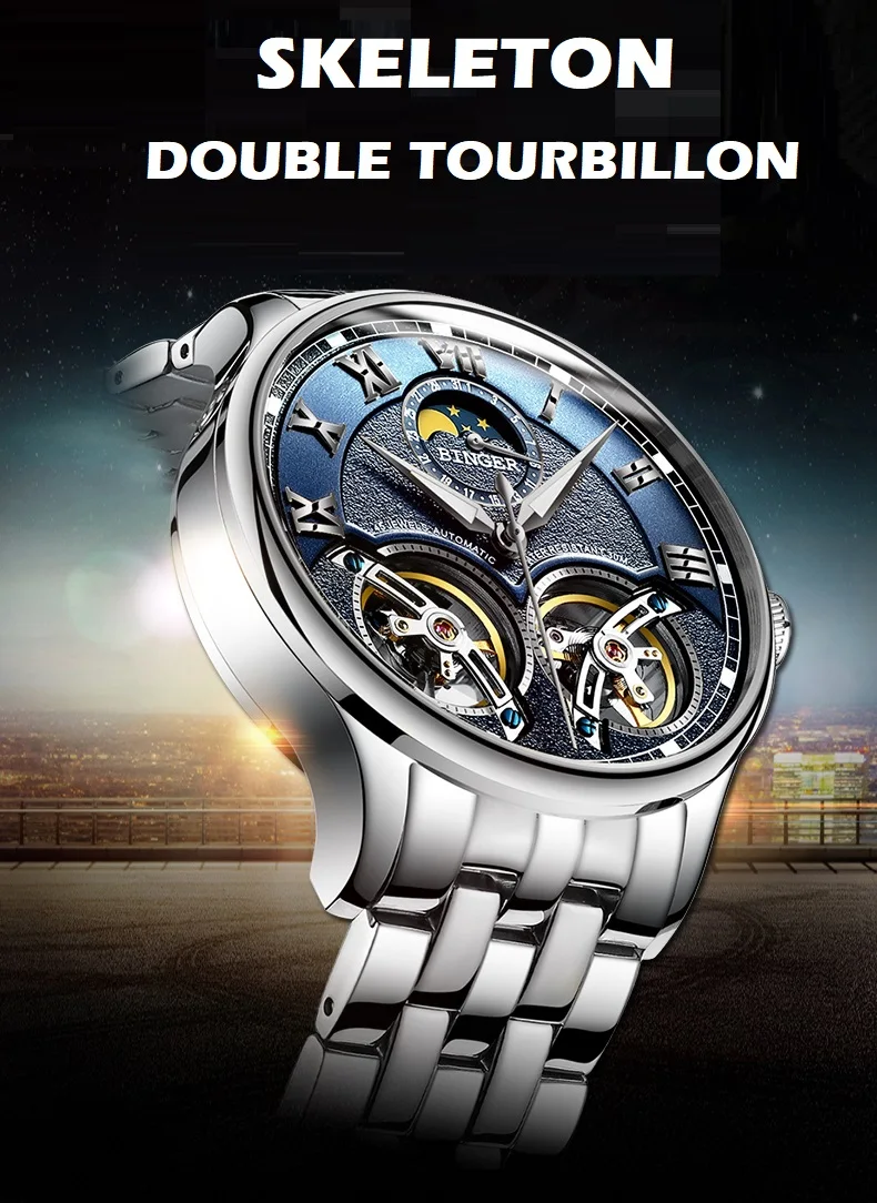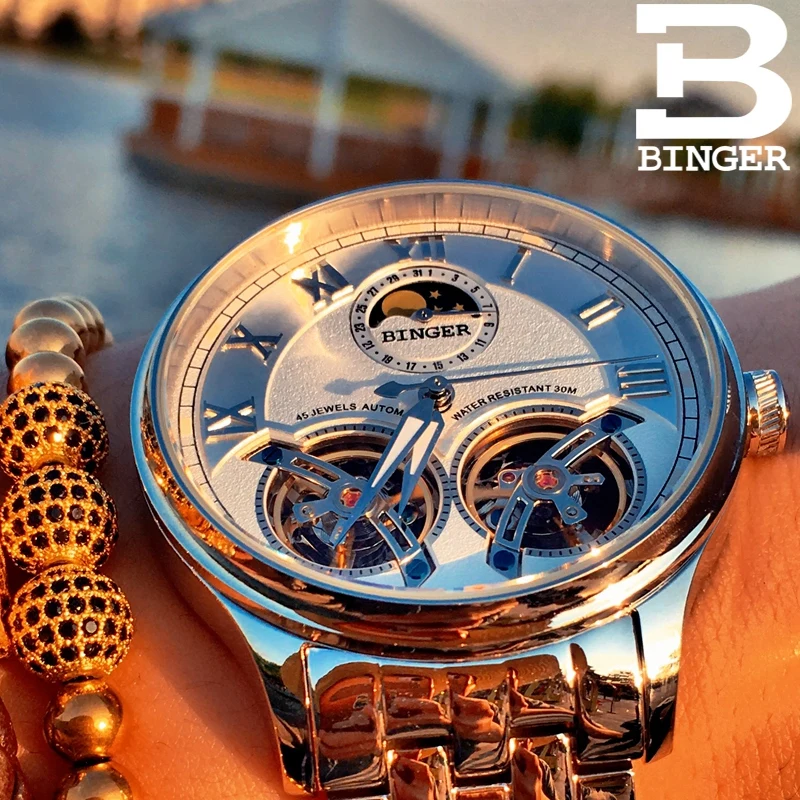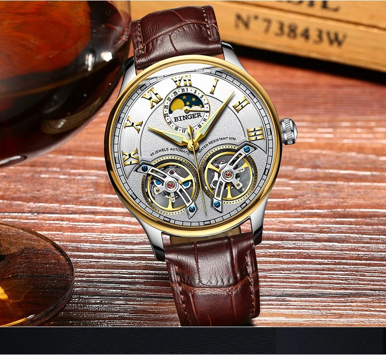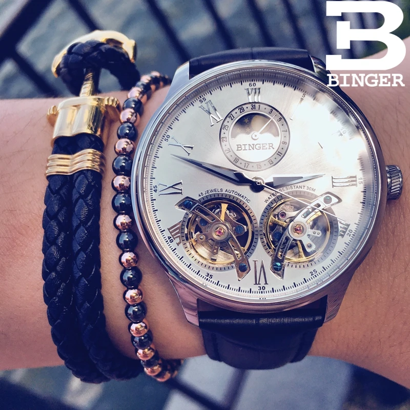 Швейцарские автоматические часы-скелетоны BINGER для мужчин, модные...