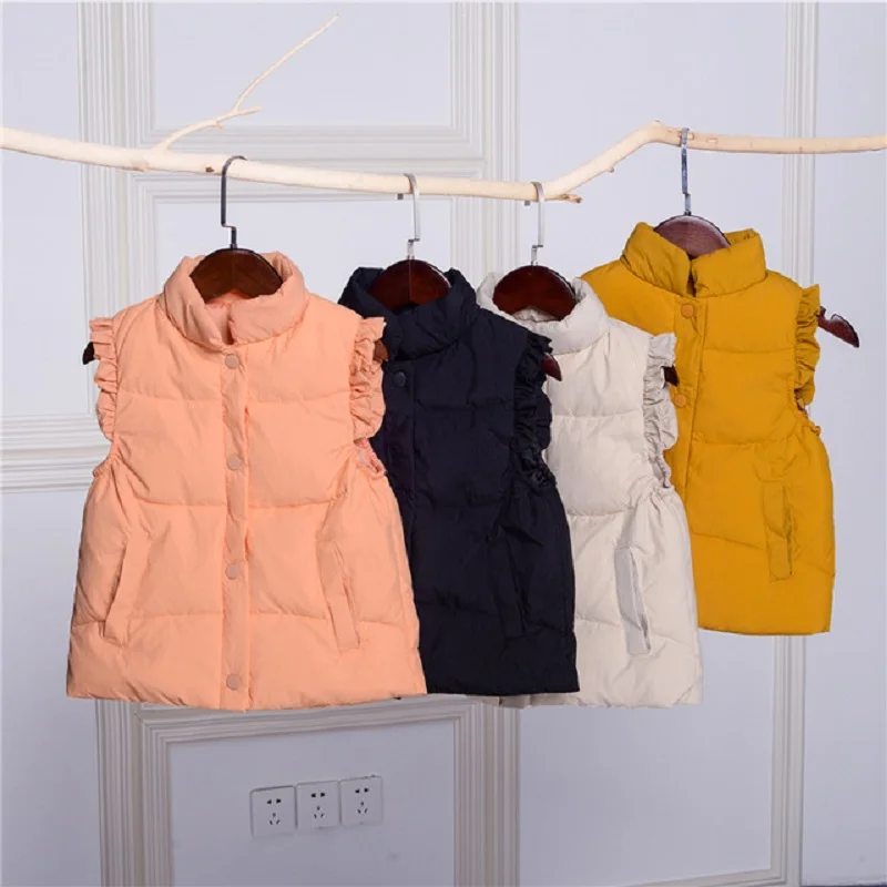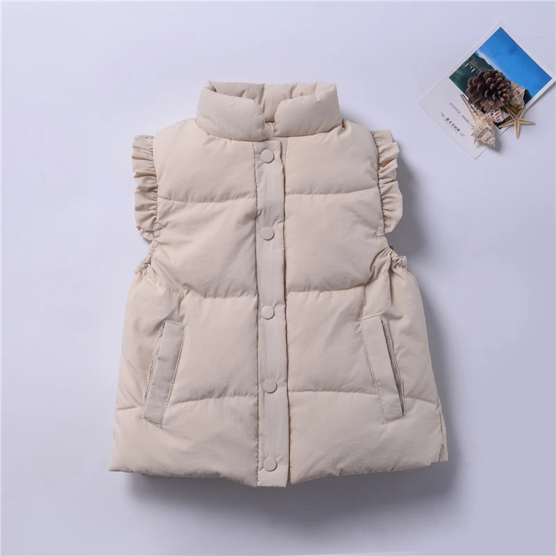 Модный теплый пуховой жилет для маленьких девочек, легкий детский жилет с оборками и рукавами, Детская верхняя одежда из белого утиного пуха