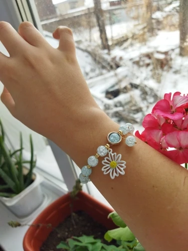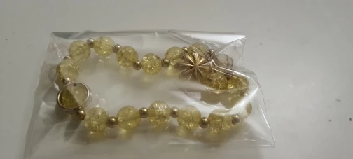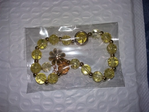 Браслет шикарный. Не такой ярко-желтый, как на фото, но с пузырьками в бусинах, что делает его очень необычным и похожим на янтарный. Фурнитура качественная, внутри леска-резинка, которая тянется, но несильно. Подойдёт на среднюю руку или меньше.