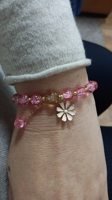 Браслет в целом симпатичный, брала за 32р. Но на фотках продавца мне показалось, что бусинки из стекла. Ан нет, пластик. На мой взгляд, конечно, подойдет больше школоте. Выглядит каким-то детским, дешевым... Ну да ладно, отдам дочкам, тем более им он больше понравился на моем запястье болтается. На резинке