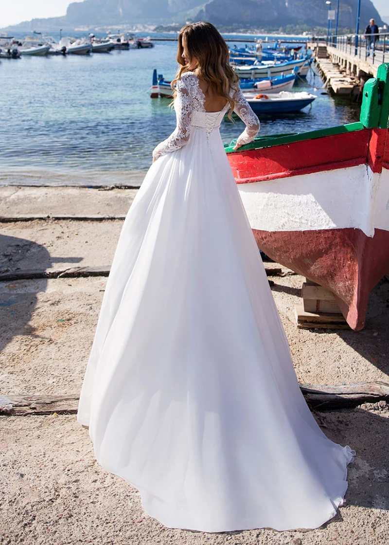 Роскошное Дешевое пляжное свадебное платье 2021 А-силуэта, белое шифоновое платье с аппликацией, летнее свадебное платье с длинными рукавами, простое платье