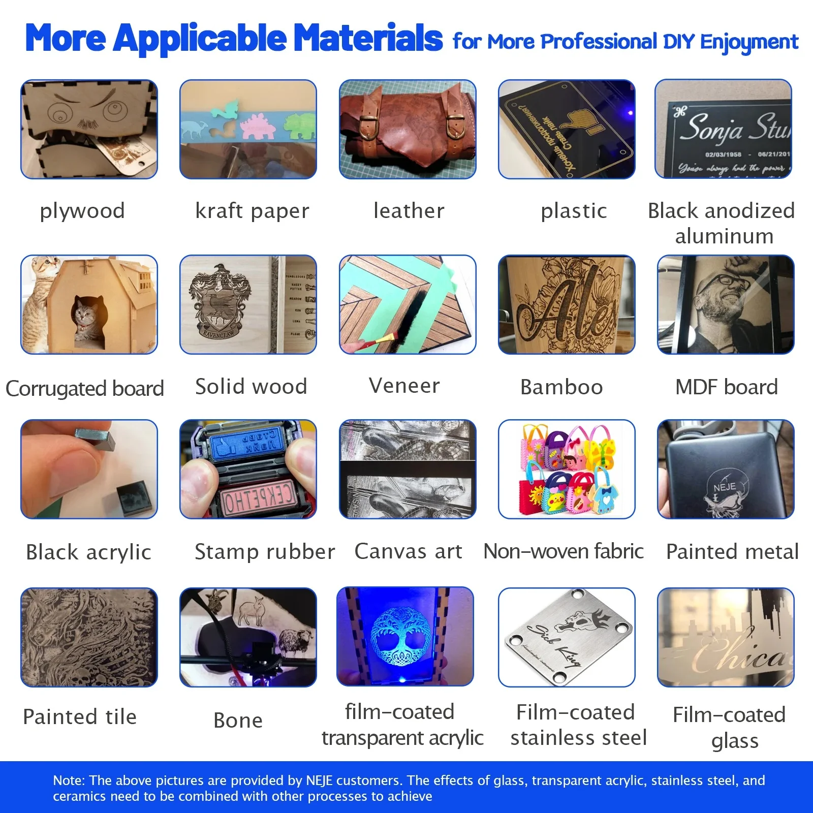 【Как выбрать модуль? 】Резка-если вы только режете приложения в пределах 8 мм, NEJE рекомендует N30820 20W и N40630 30W хороший выбор. Эти два модуля могут разрезать фанеру 3-4 мм в режиме помощи воздуху. Если вы хотите отрезать 8-20 мм, вы можете выбрать модуль A40630 и A30100 и A40640. Если есть требование для резки скорости, рекомендуется модуль A40640 40W, F30130 подходит для пользователей, у которых есть требования к эффективности работы и оборудованию воздушного компрессора. Этот модуль может резать фанеру 4 мм одновременно с максимальной толщиной 5 мм, он использует очень простой метод фокусировки. Фокусное расстояние 5 мм может блокировать более 95% светильник и безопасно использовать. Если вы часто гравируете портреты, вам просто нужен один из модулей NEJE B40635 405 мм, этот модуль представляет собой Текущий Модуль максимальной оптической мощности 405 мм, модуль 405 мм имеет очень хороший результат в градациях серого. Если вы просто для простой гравировки, N30610 или B30635 идеально подойдет для вас.