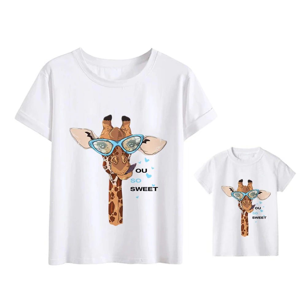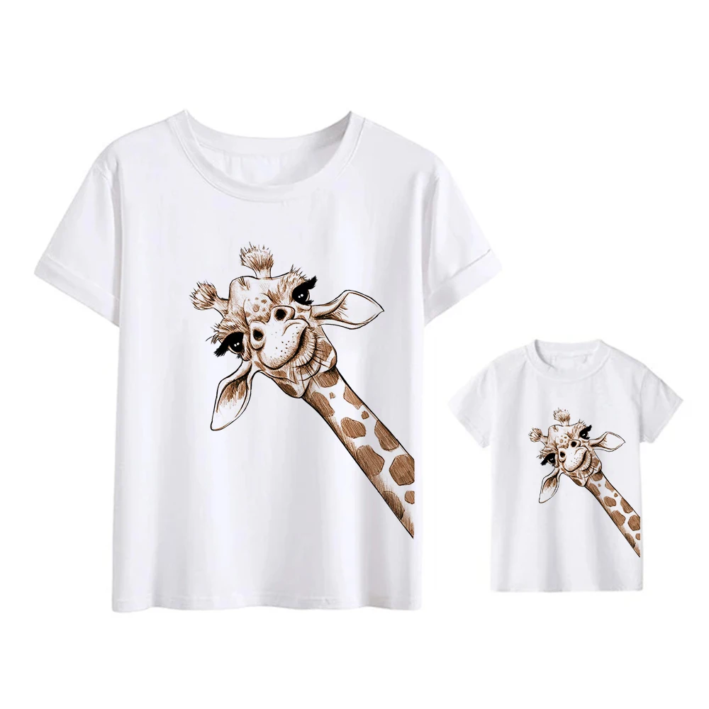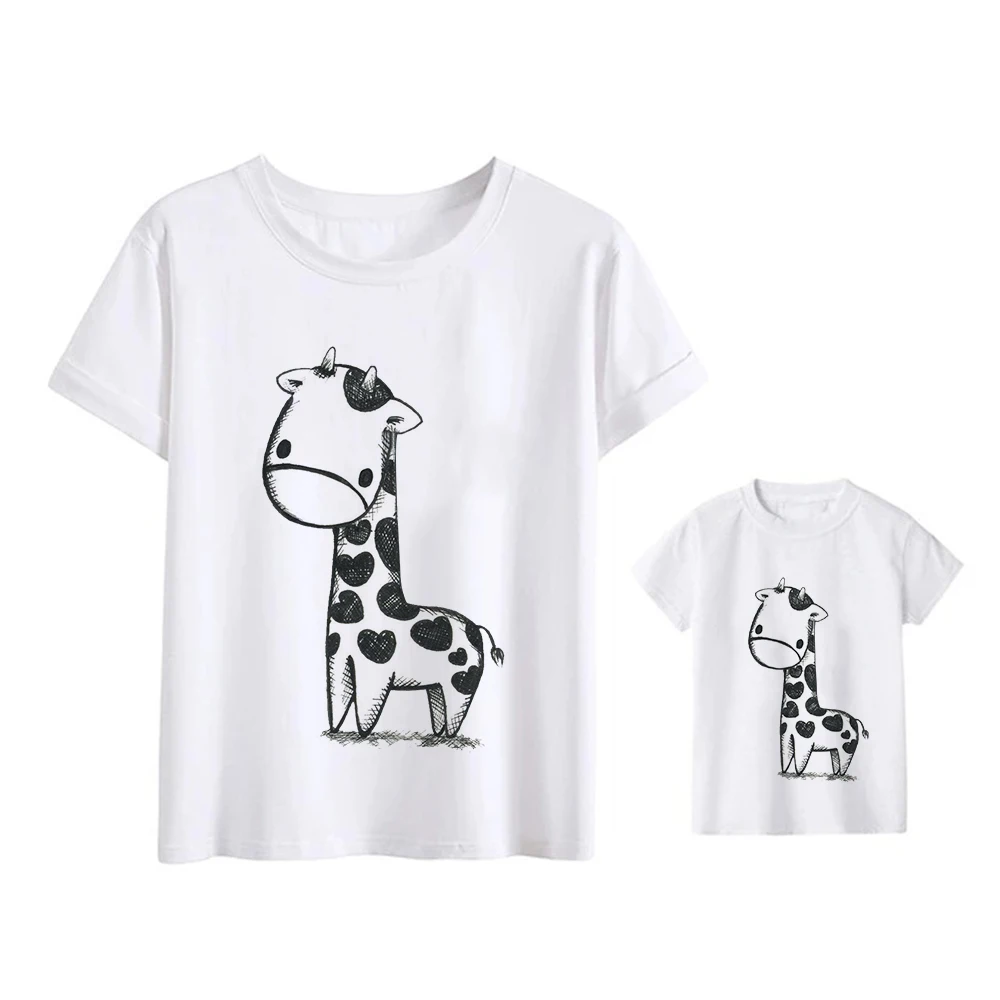 Комплекты одежды для мамы и дочки, одинаковая футболка с жирафом, одежда для мамы и ребенка, наряды, уличные футболки для груди, Повседневная Прямая поставка