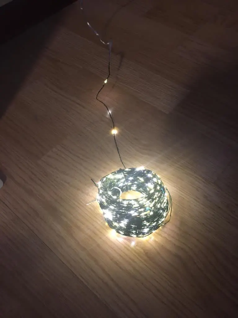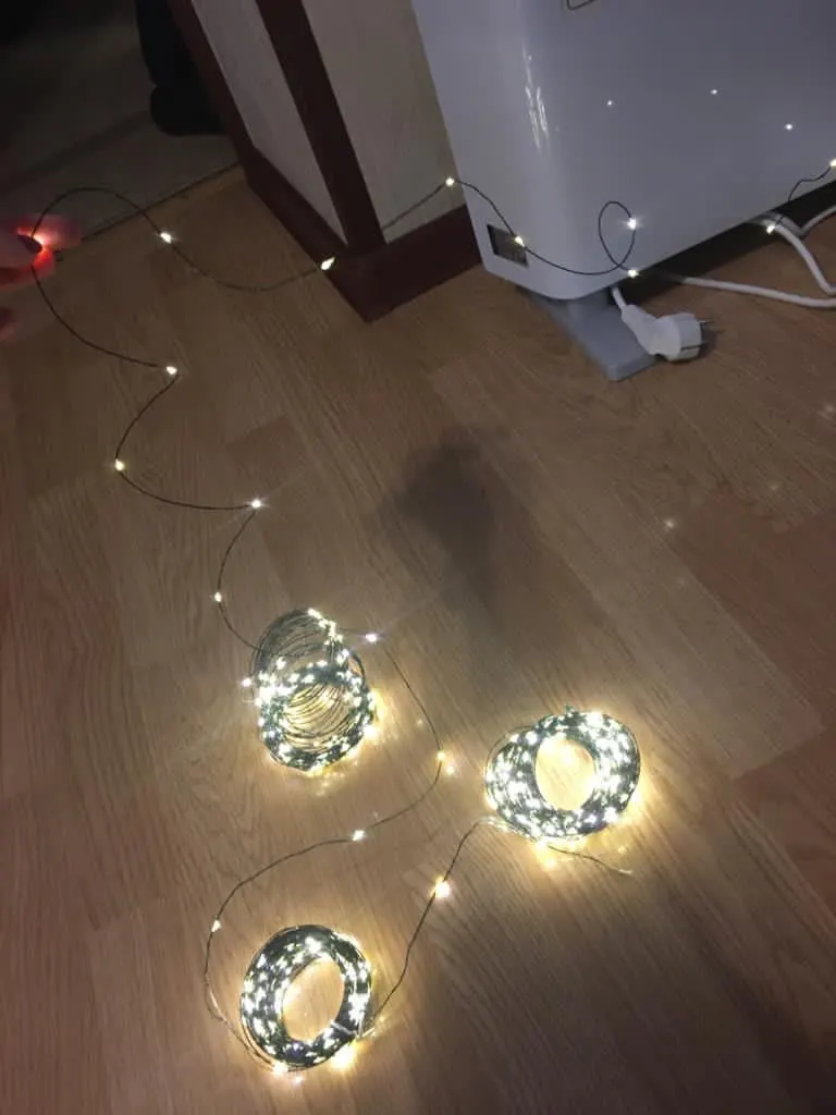 Очень тонкая леска. В некоторых местах порвана проводка, но работает! Запуталась на средине, распутать было не легко!заказывала тёплый белый, почему-то не совсем тёплый . Посмотрим сколько лет прослужит.