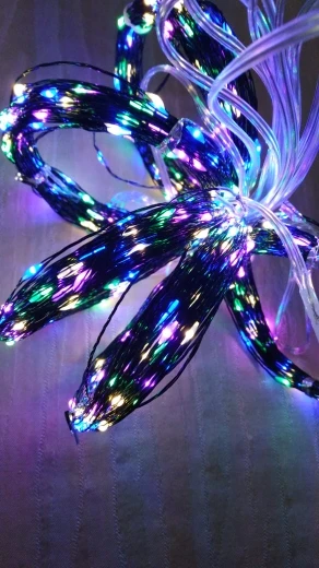 Гирлянда очень классная! Нежные приятные тона свечения! Провод тоненький, по этому почти незаметен. 8 режимов которыми можно управлять и с пульта и с блока питания. Так же с пульта регулируется яркость. Брал 50 метров,по этому аж устали крепить на потолке! Посылка пришла в заявленные сроки. Всё супер!