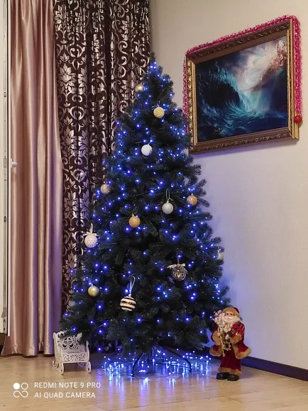 посылка пришла быстро. всё как в описании. огоньки красивые. камера не передала яркость огней. но передала , что на 4 метра сосны, 30 метров это очень мало. сосна выглядит общипано) вот думаем смериться с таким видом или заказать 100 метров. продавцу спасибо, товар отличный!!!
