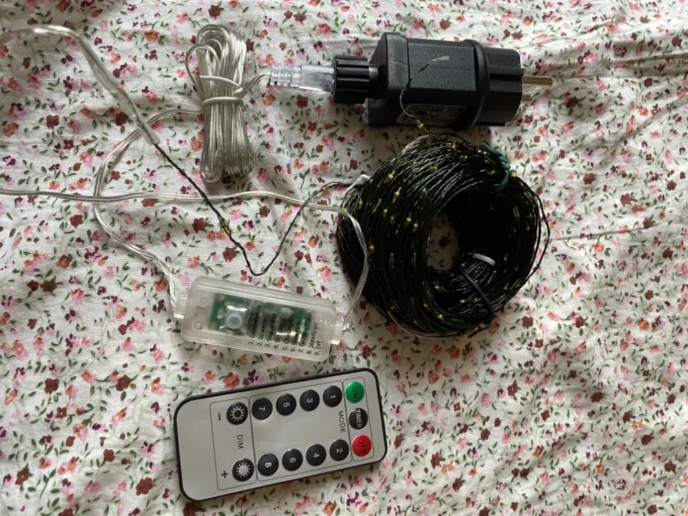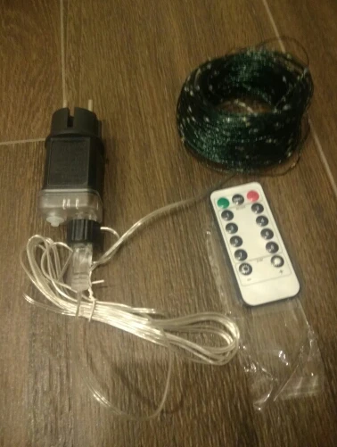Отличная гирлянда! Описание точно соответствует изделию: Зелёная нитка, которая не будет видна на рождественском дереве, много лампочек (я заказал 50м), пульт управления, 8 режимов мигания. В пульте нет батарейки, но если пультом пользоваться не планируете, есть возможность менять режимы прямо на вилке. Рекомендую! Доставка супер быстрая: заказал 11.11, доставили в Москву - 19.11
