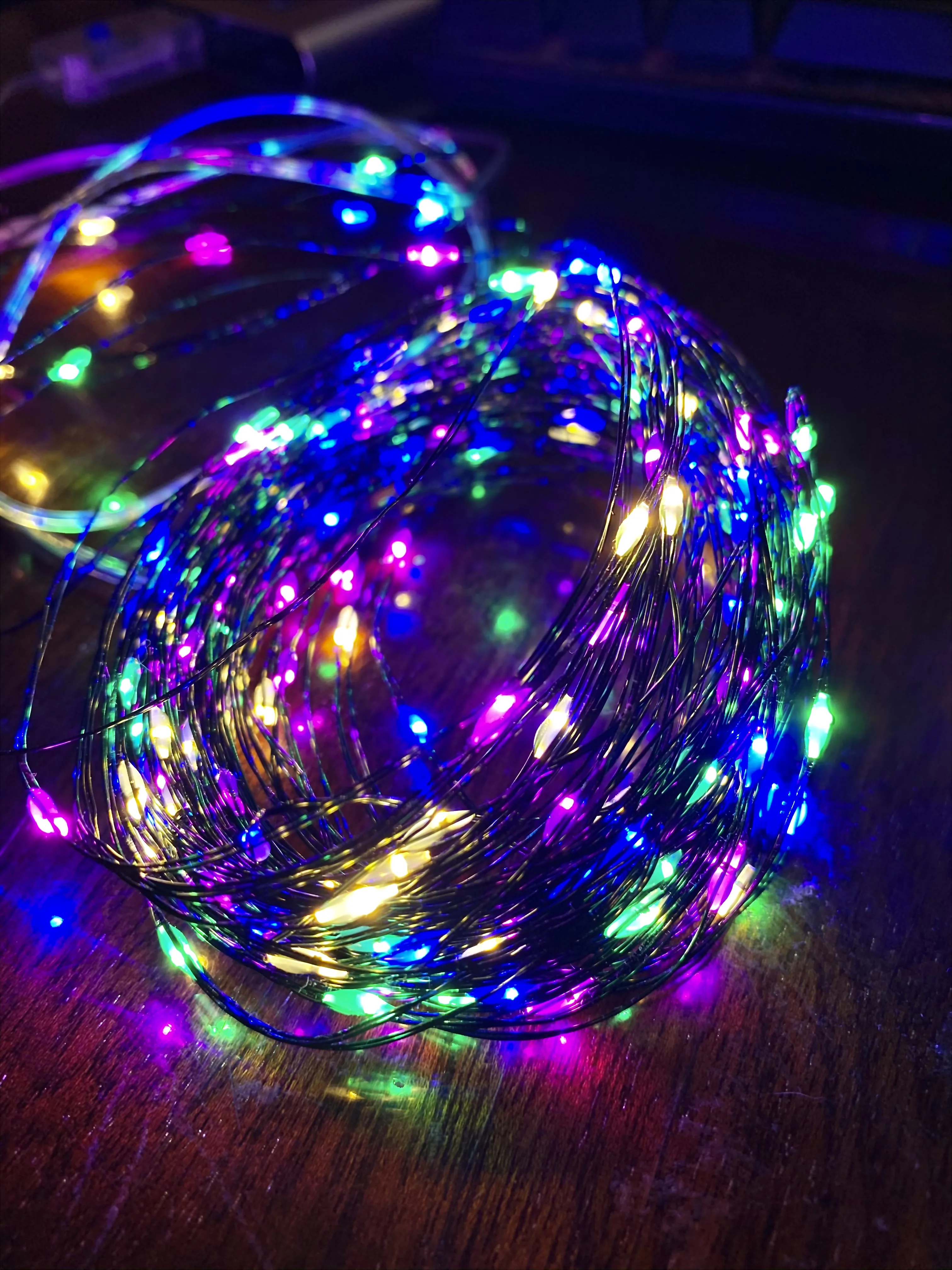 Офигенные огонёчки! Елка высотой 2.20, взяла 100 метров. Наматывать пришлось долго, но оно того стоит.