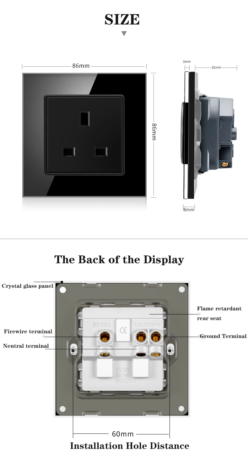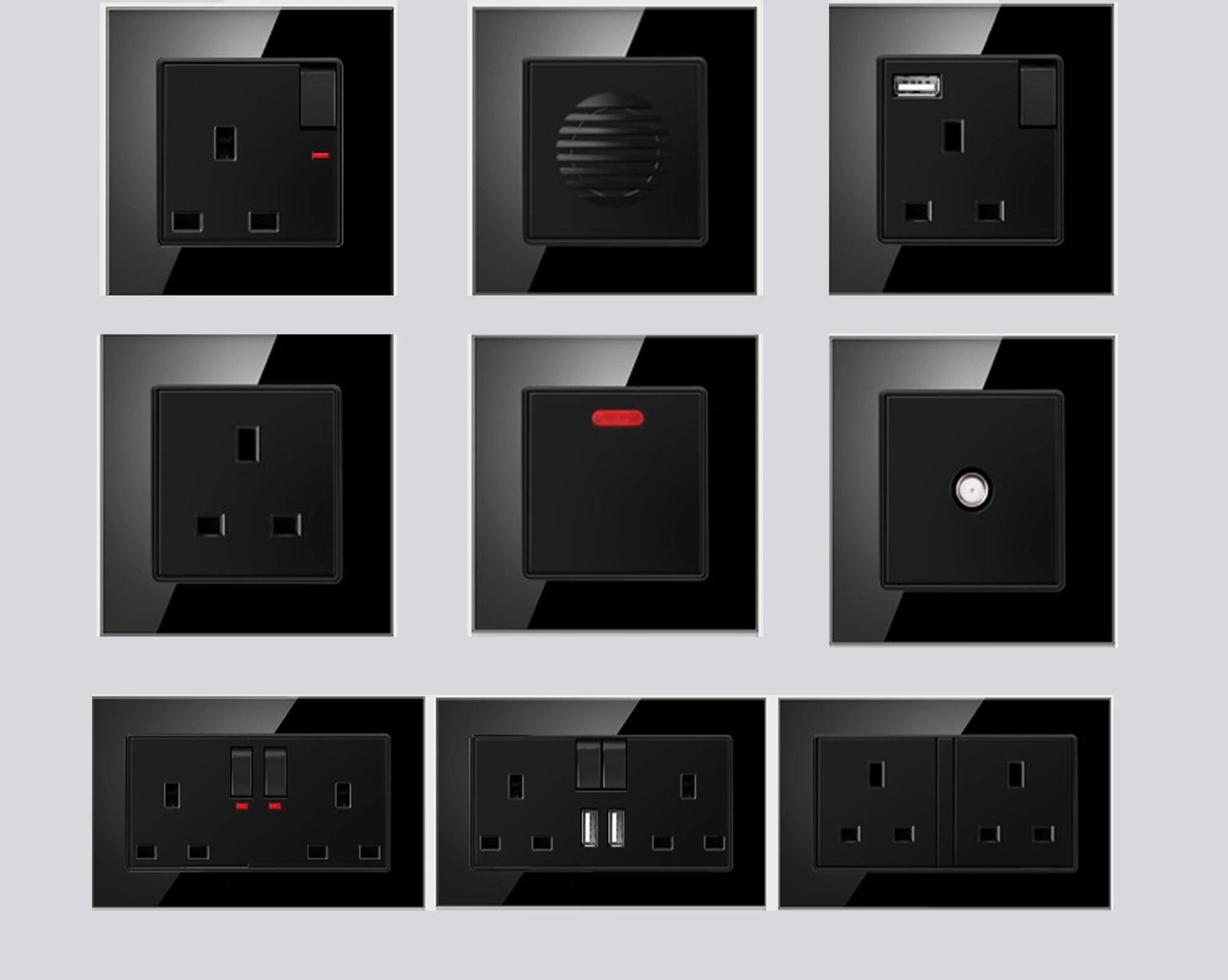 Британская розетка с USB-зарядкой, британский стандарт, квадратная ножная розетка с тремя отверстиями, панель из закаленного стекла