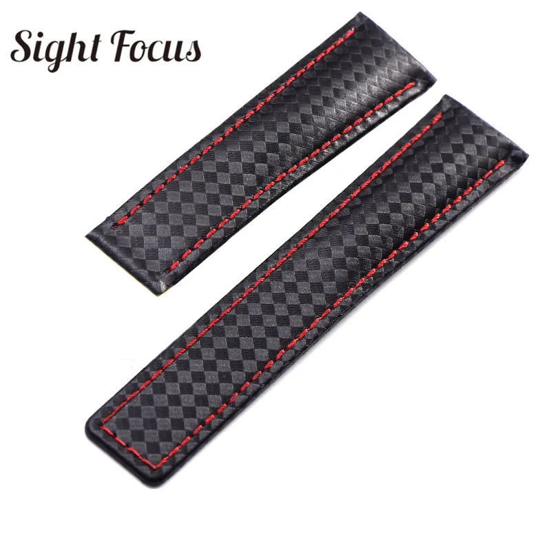 Ремешок для часов 19 мм, 20 мм, 22 мм, из углеродного волокна, кожаный ремешок для Tag Heuer, Samsung Gear S3, Раскладывающаяся пряжка, Красная строчка для ремня Carrera