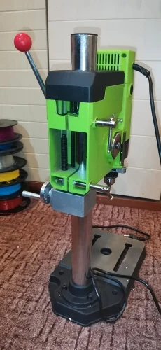 Классная сверлилка! Доставили курьером за неделю. Есть электронная линейка, легко регулируемый упор для сверления на одинаковую глубину, 2 скорости механические и электронная регулировка оборотов, корпус сверху хорошо продуман - есть место под ключ для патрона и несколько сверл - мелочь, а приятно. Есть гужон блокирующий вертикальную подачу - похоже на задел под фрезеровку если на него поставить координатный столик... Пробовал сверлить нержавейку 5мм на 1 скорости и минимальных оборотах (200об/мин пишет) сверлом на 12.5мм - станочек справился отлично, падения скорости не заметил. Биения сверла на глаз тоже не заметил. Брал за 11444р по скидке. Один правда минус у него есть - громковат, особенно на высоких оборотах, в остальном станок огонь!